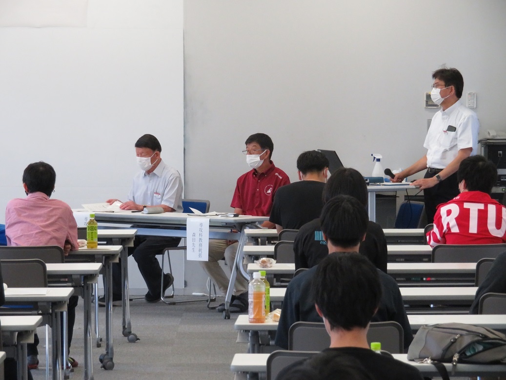 2021年度 専攻科同窓会総会を開催 2021/08/28 活動報告 ツイート 8月28日(土)、専攻科プレゼンテーションルームにて2021年度 同窓会総会を開催しました。 当日は、来校者の検温・アルコール消毒・会場の換気・座席の間隔など感染症対策を徹底し、1期生4名、2期生8名、3期生7名、4期生16名の計35名の修了生が来校してくれました。会計報告などの総会、専攻科の近況報告、修了生の近況報告の提出など1時間ほどの会でしたが、みなさんの元気な姿を見ることができました。 総会資料は以下からご確認いただけます。 パスワードは同窓会員の皆様には、2021年度総会案内にてお知らせしています。