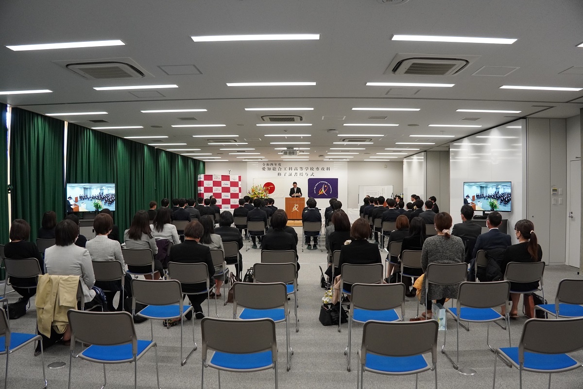 令和4年度修了証書授与式が専攻科プレゼンテーションルームで挙行されました。PTA会長を来賓にお迎えし、保護者24名が見守る中、40名が巣立っていきました。 これからはそれぞれの職場で、それぞれのスタイルで、リーダーとして活躍してくれることを願っています。