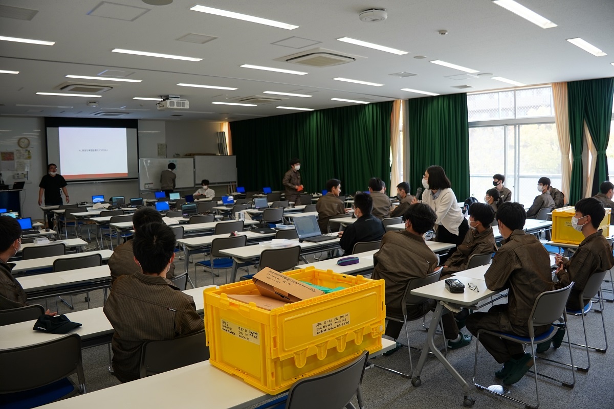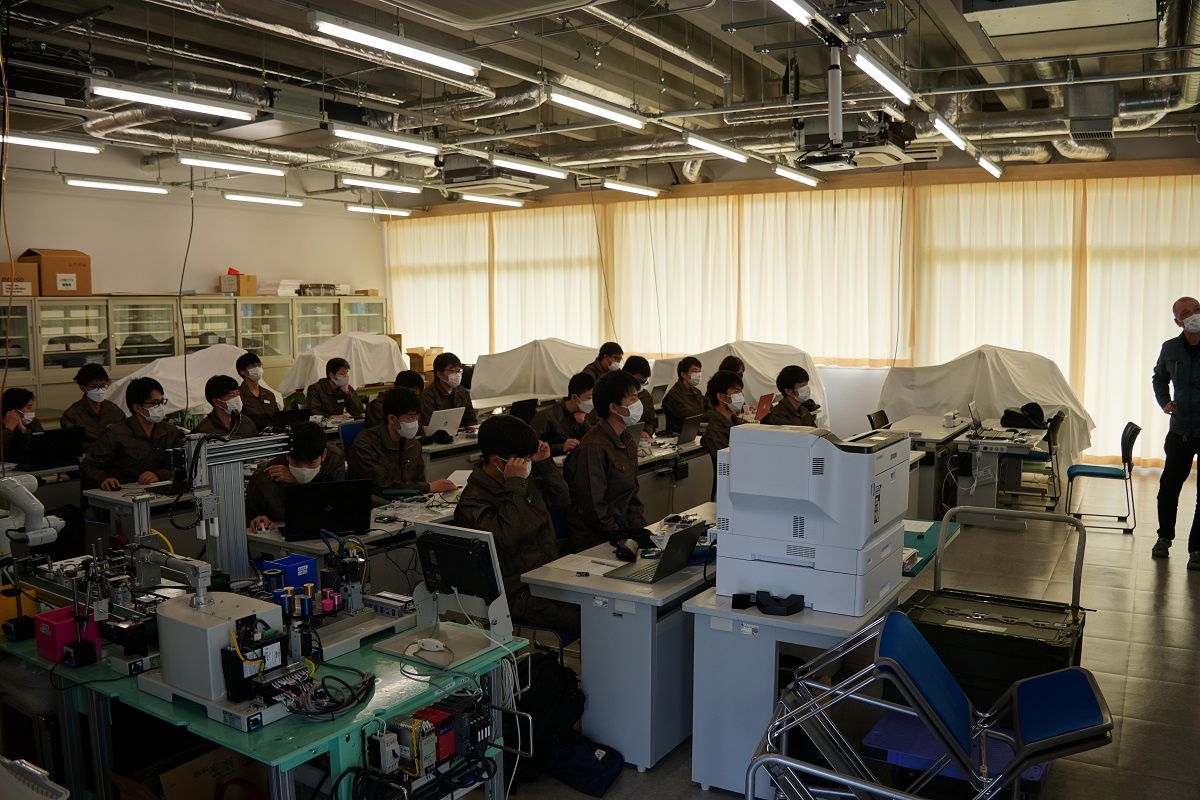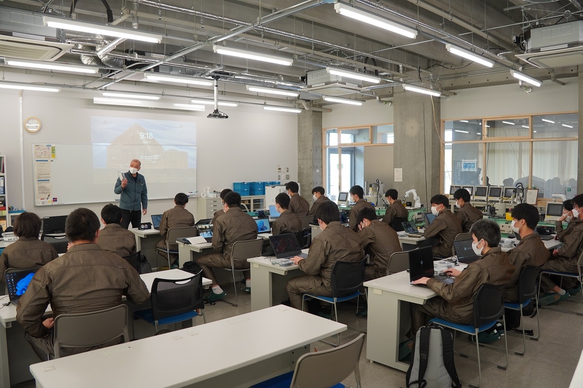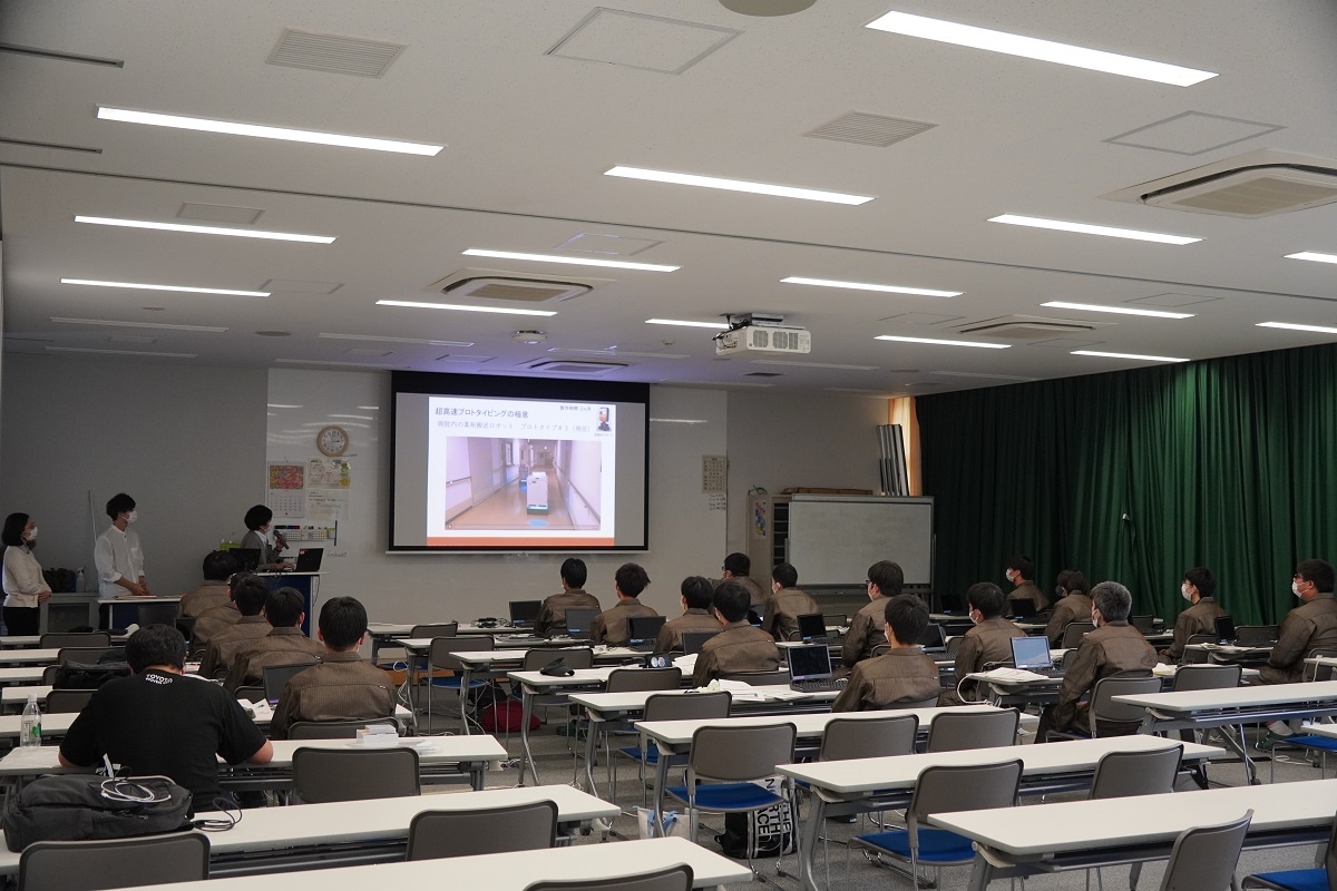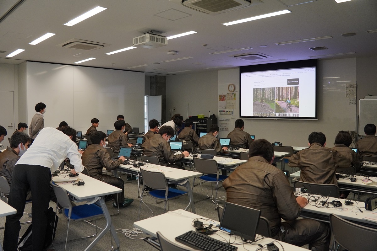 今日、1年生は『コース実習』でした。自動車・航空コース、電子・ロボットコースは「電子計測」、電気・制御コース、情報・ITコースは「AI」でした。 「AI」では、トヨタウーブン・シティで活躍されているエンジニアの方から、プロトタイピング、生成系AIについて、音声認識・顔認証・IoTハードウエアについて学びました。