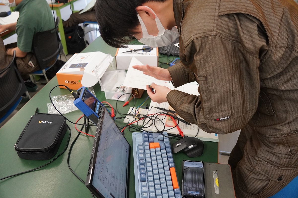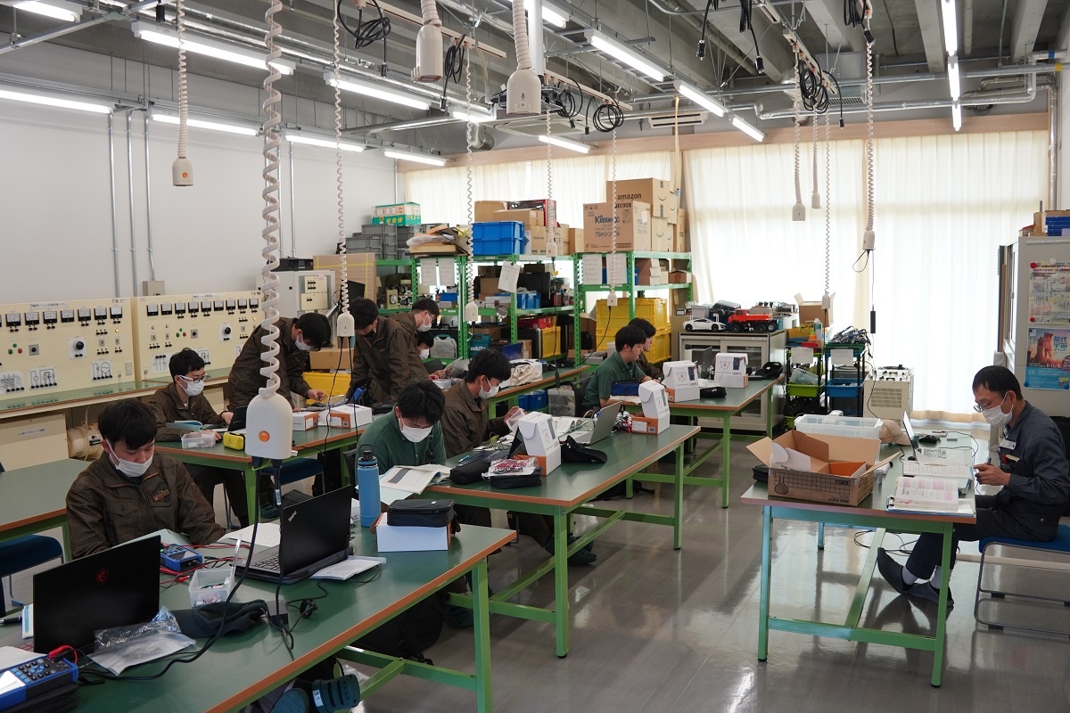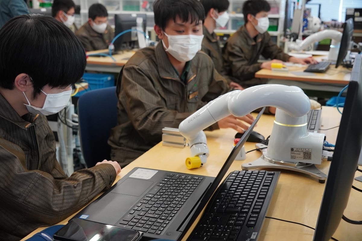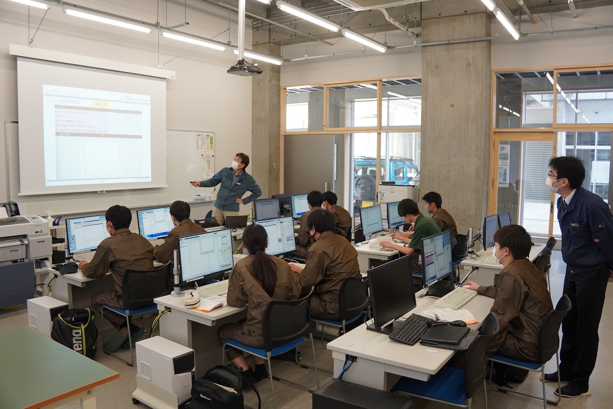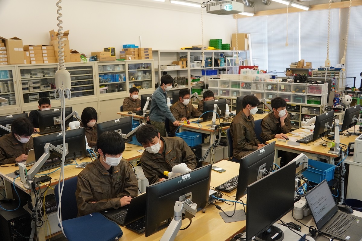 今日、2年生はコース実習でした。自動車・航空コースは「MATLAB」、電気・制御コースは「電気保全」、情報・ITコースは「ROS COBOTTA」、電子・ロボットコース「マイコンとネットワーク」に取り組みました。