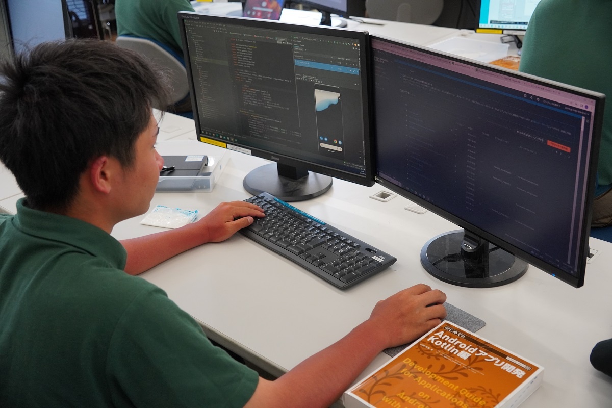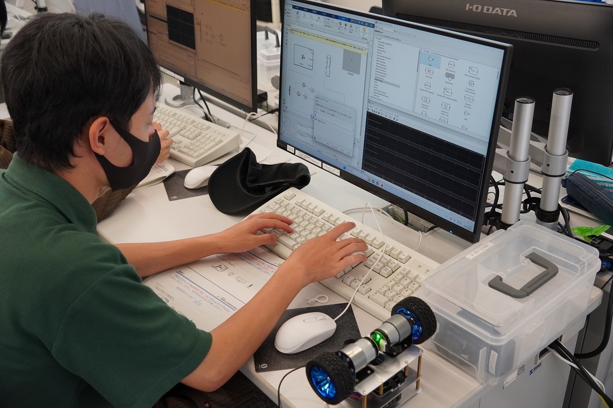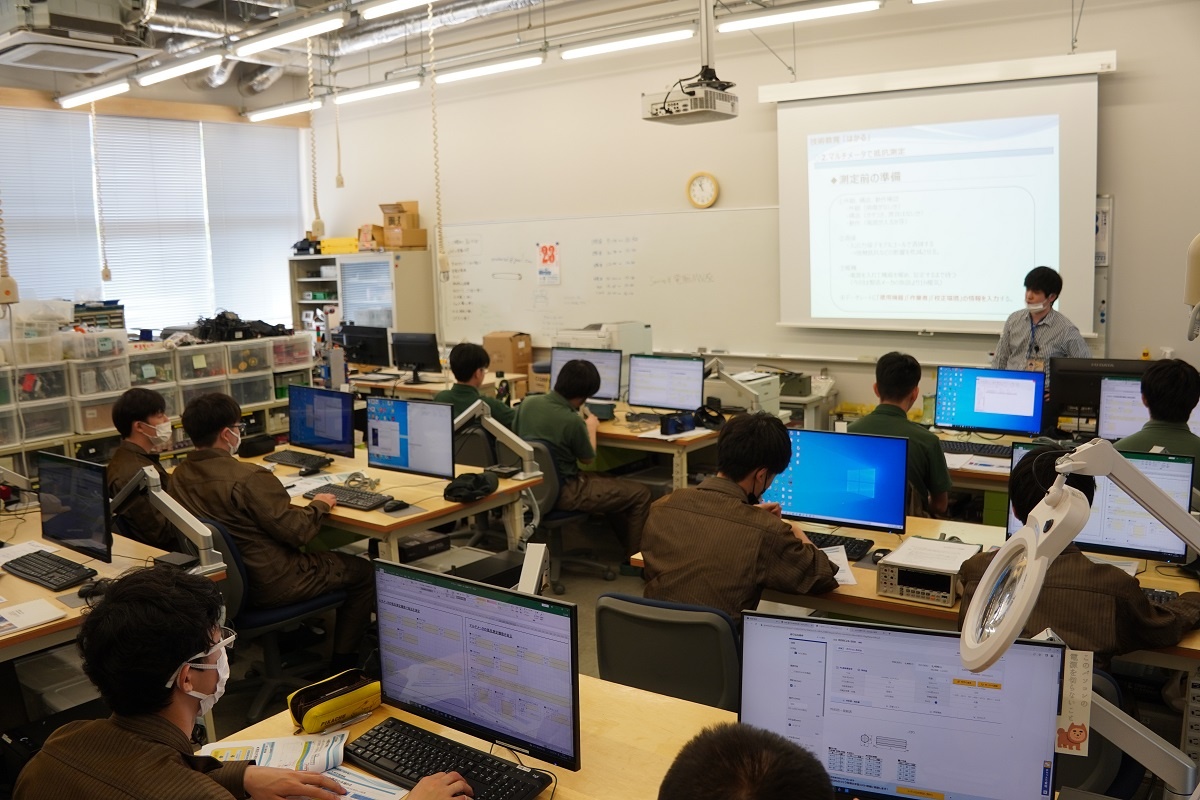 今日は2年生がコース実習でした。自動車・航空コースは「航空機製造(皿取り、平鋲)」、電気・制御コース「MATLAB」、情報・ITコース「アプリ開発(基礎)」、電子・ロボットコースは「車両開発周辺技術」に取り組みました。