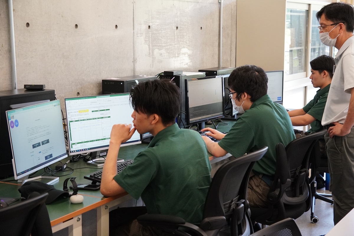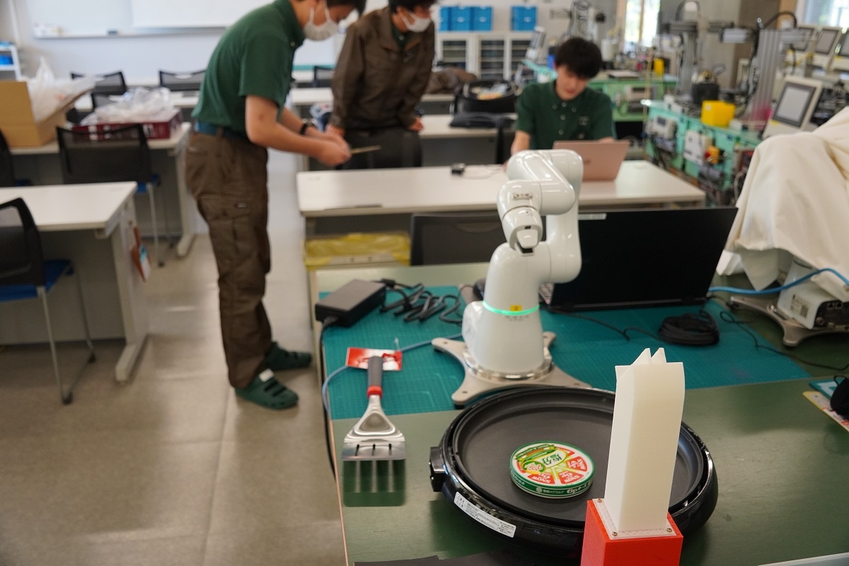 今日は1年生が総合実習でした。 「先端小型ロボットの開発と製作」班は、夏に1年生・2年生合同で参加する若年者ものづくり競技大会(ロボットソフト組み込み職種)に向けて準備を進めています。 「先端ロボット活用システムの開発と実践」では、COBOTTAを使ってパンケーキを焼くことを目標に作業を進めています。