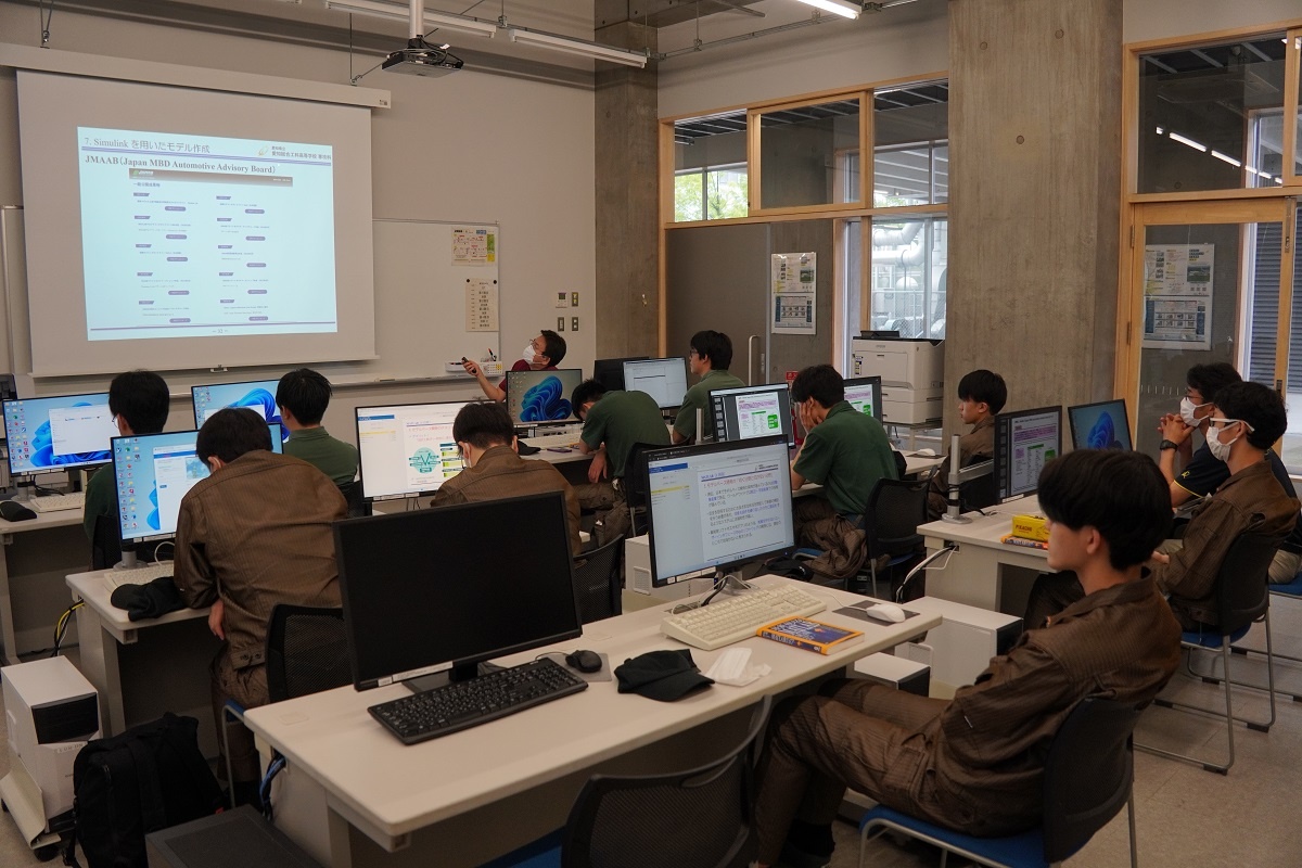 今日の2年生はコース実習でした。自動車・航空コースは「ロボット特別教育」、電気・制御コースは「パワーエレクトロニクス(@三菱FAセンター)」、情報・ITコースは「アプリ開発」、電子・ロボットコースは「MATLAB」に取り組みました。