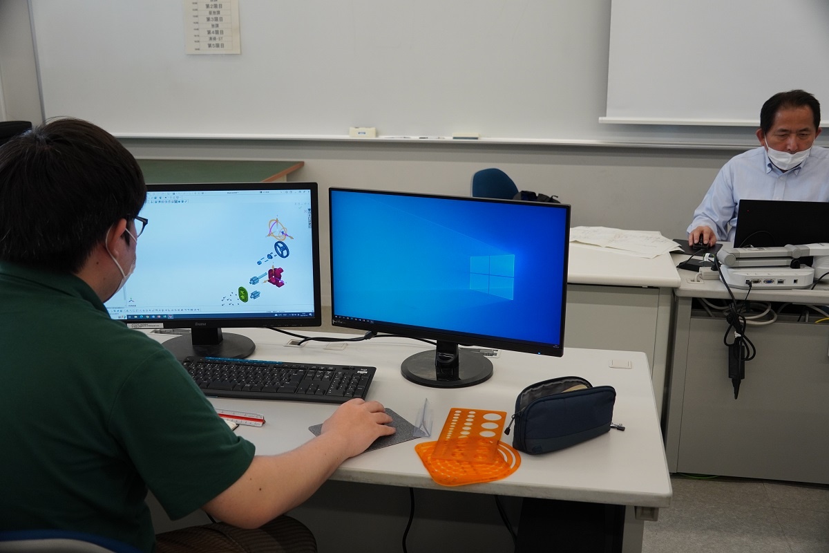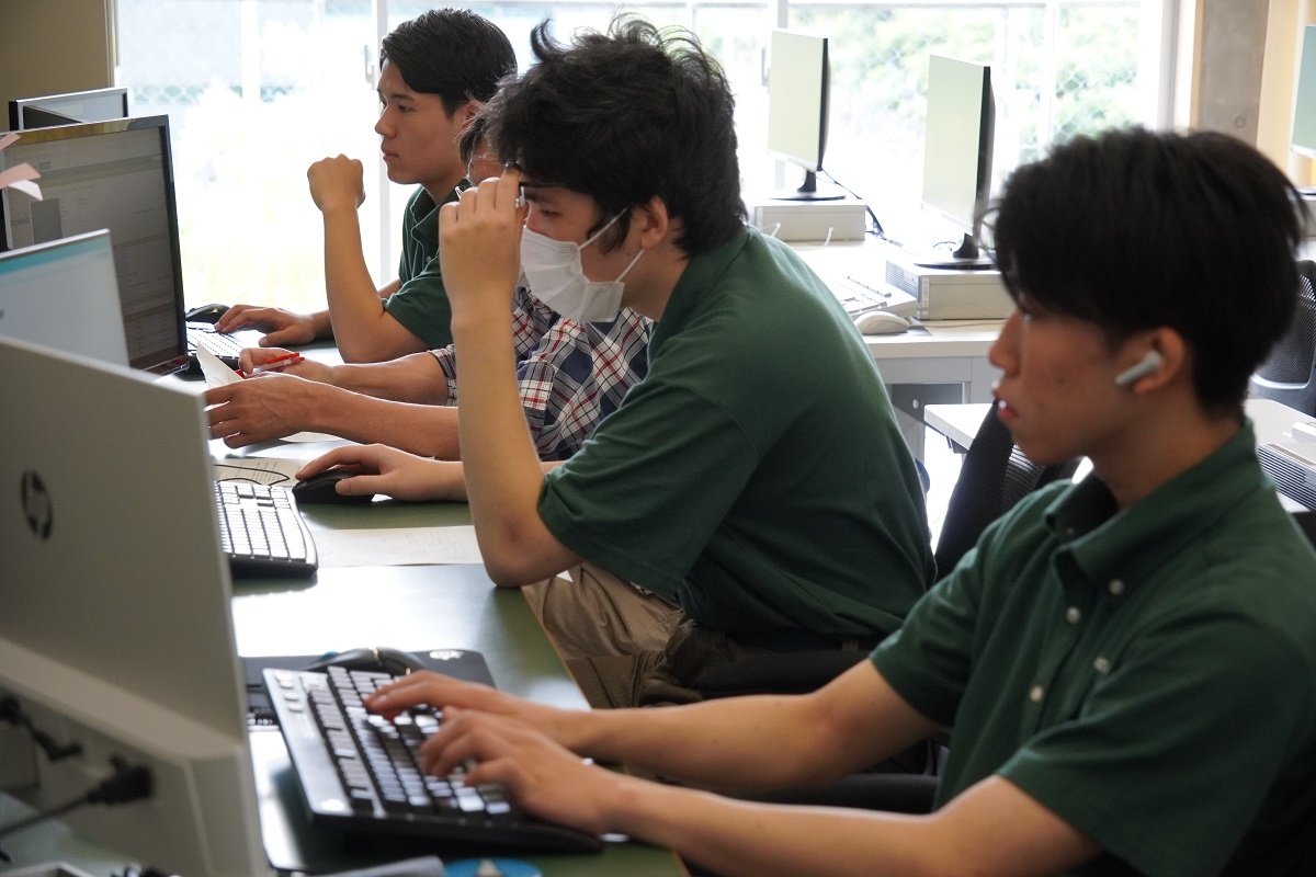 今日は1年生が総合実習でした。「ドローンの研究(国家資格取得と姿勢制御技術の学習)」班は、とっても迫力のある大型ドローンを観察し、実際に飛行する姿を見学しました。また他のも、それぞれ大会などに向けて活動しています。