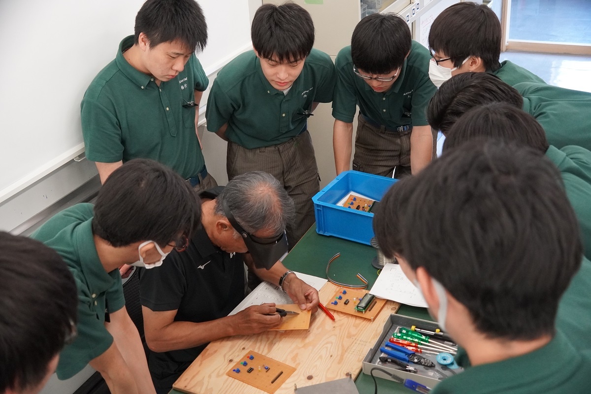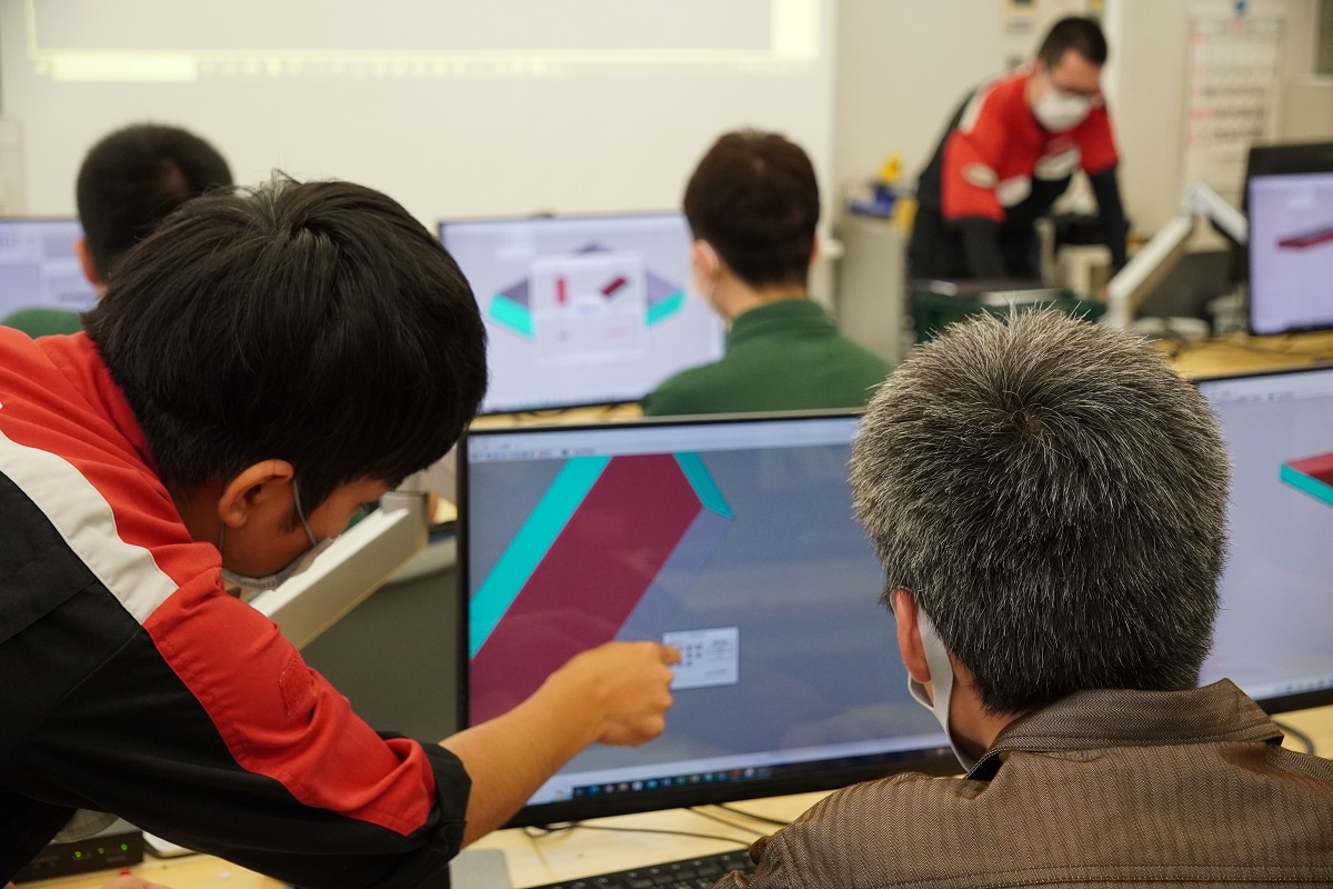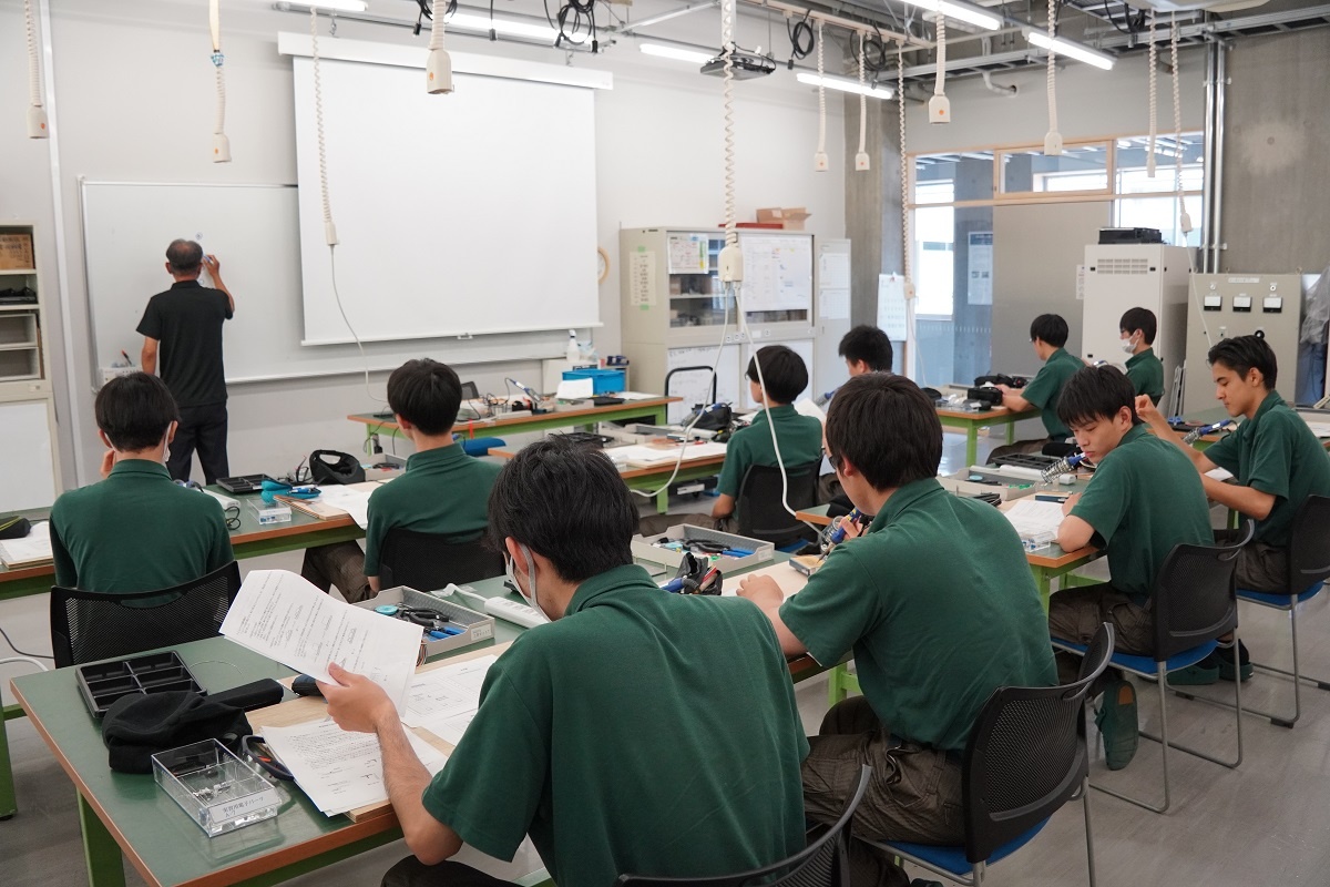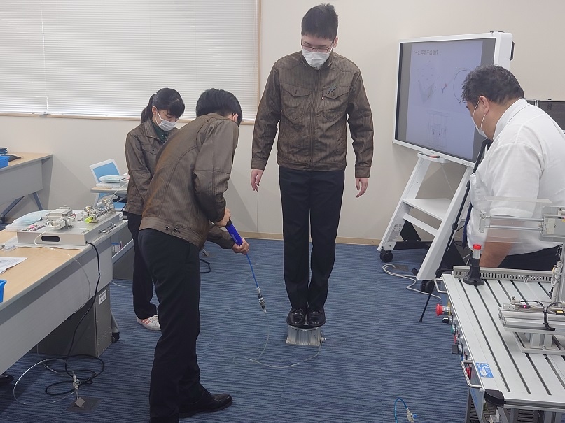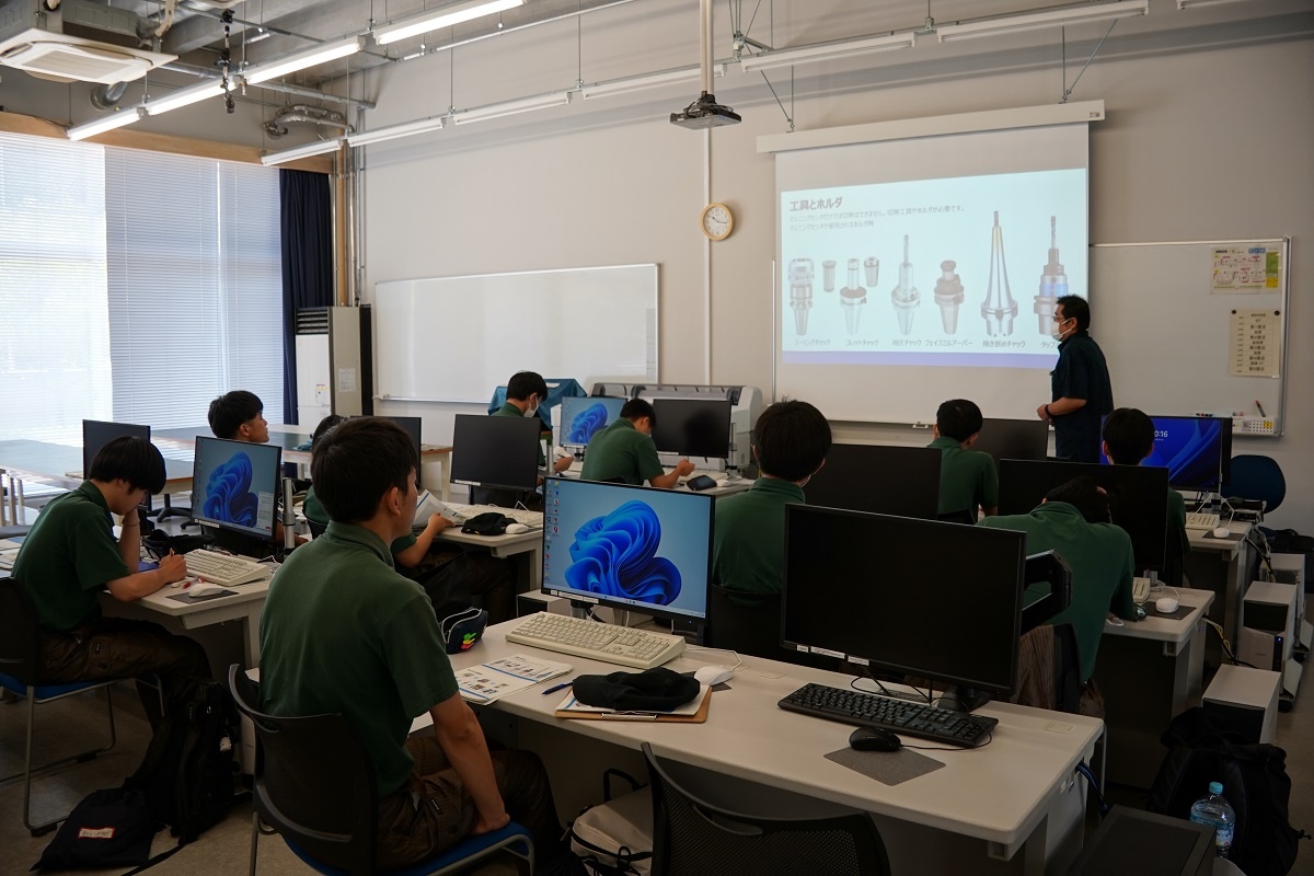今日は1年生がコース実習でした。自動車・航空コースは「マシニングセンタ」、電気・制御コースは「回路設計実装」、情報・ITコースは「空気圧制御@SMC」、電子・ロボットコースは「レーザー加工・プレス板金」に取り組みました。 専攻科では、直接現地に集合し、1日の実習を企業などの学校外で行うような総合実習やコース実習もあります。