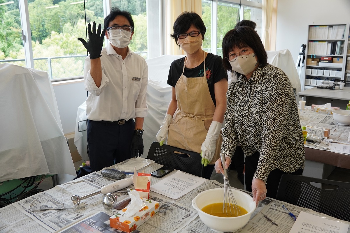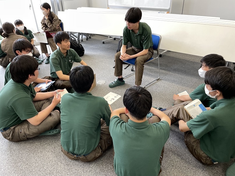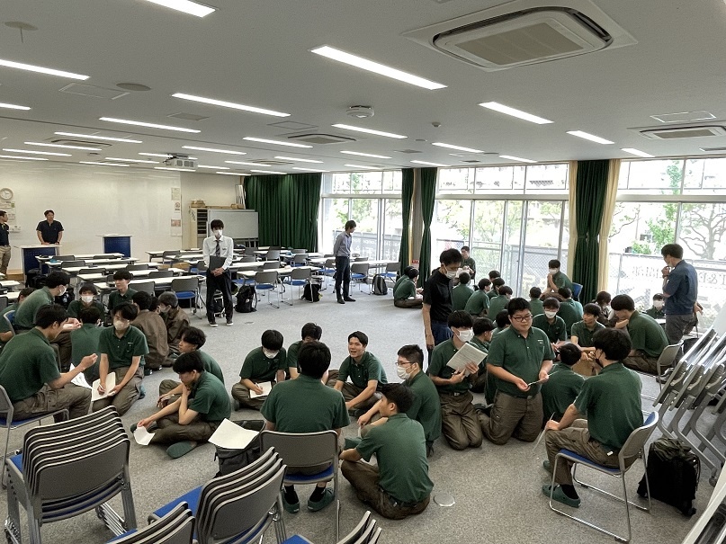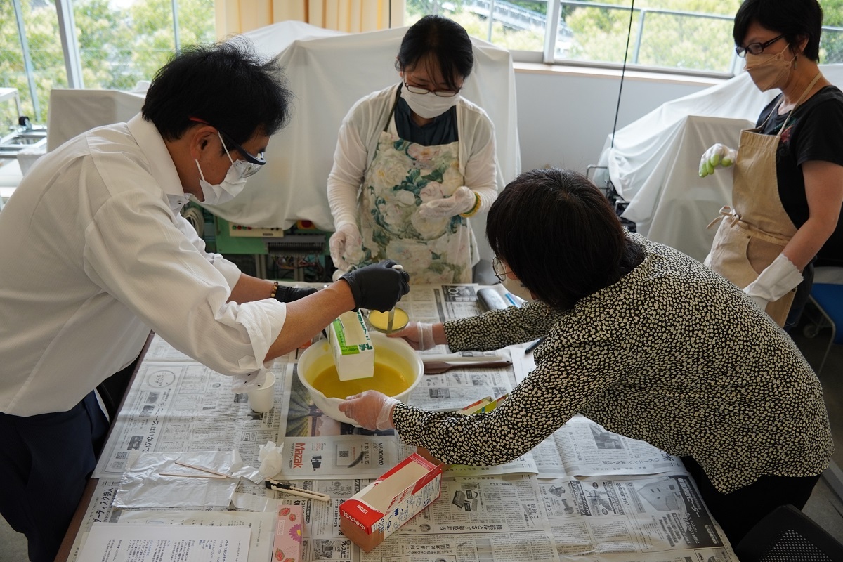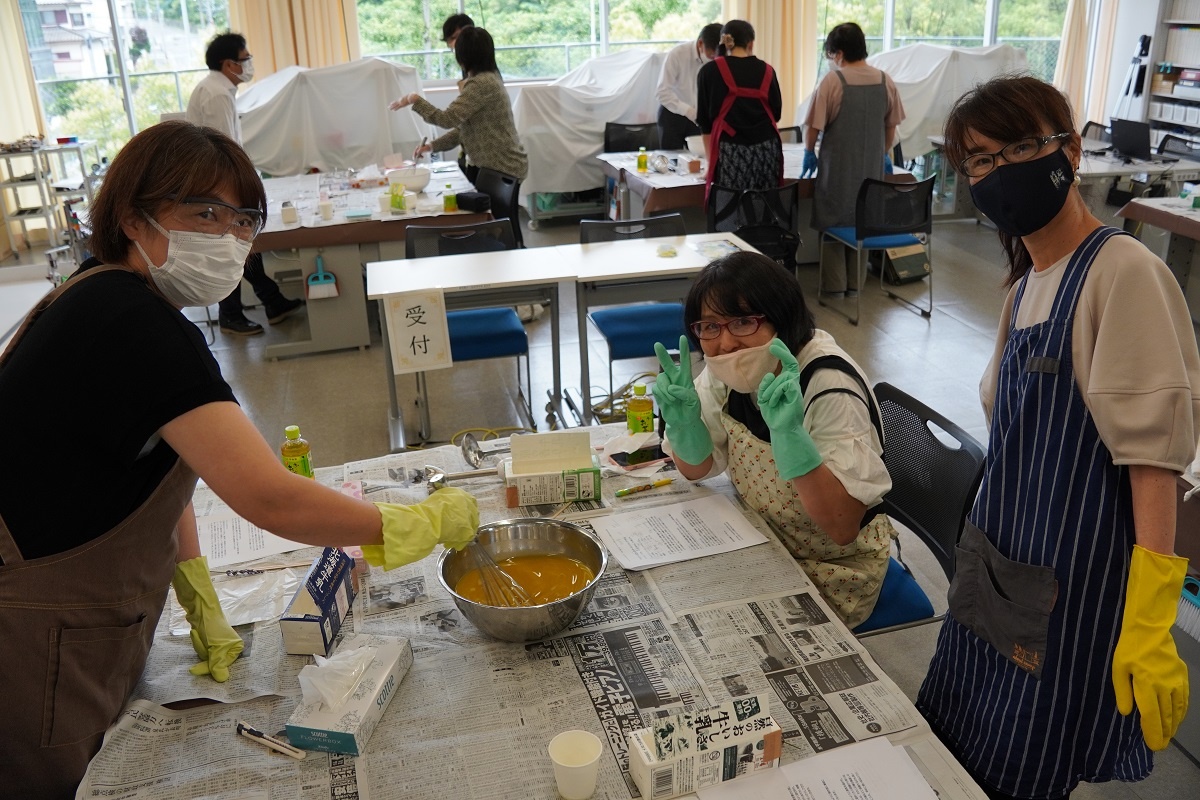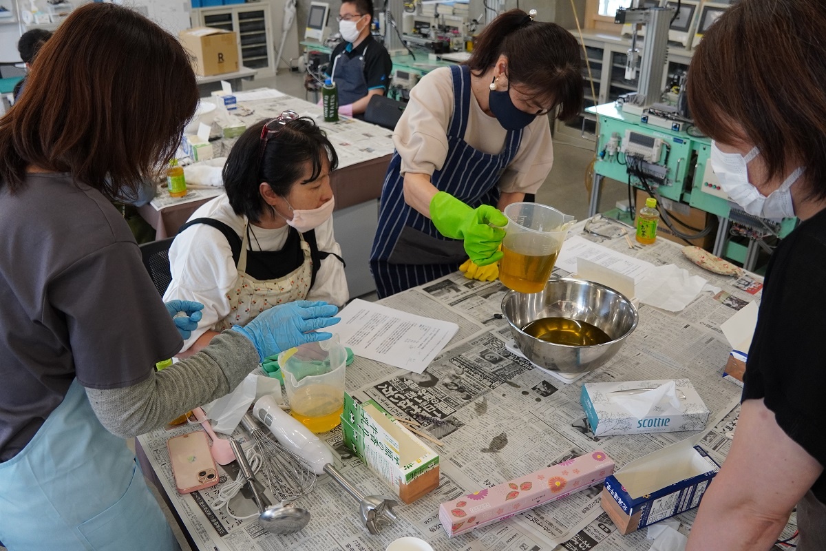今日の午前中はPTA校内研修でした。アロマと手作りせっけん教室RoomSealiahのいいだ先生を講師にお迎えし、約2時間「マルセイユ石けん作り」に取り組みました。13名の参加をいただき、楽しく作業できました。 1年生「キャリアプランニング」では、2年生から就職活動体験を聞く時間でした。