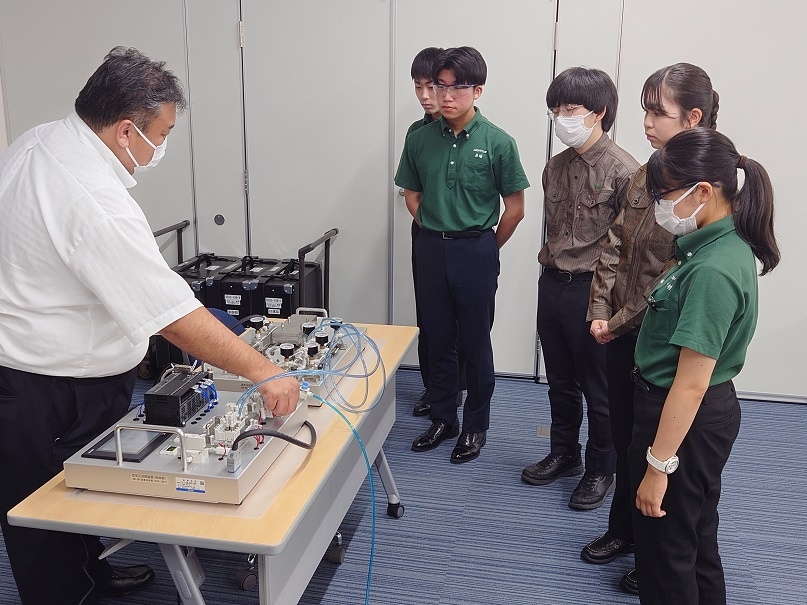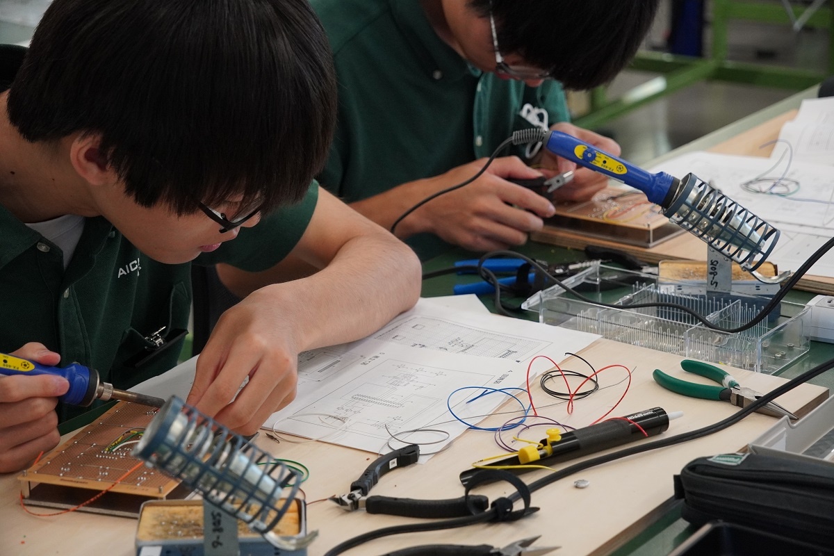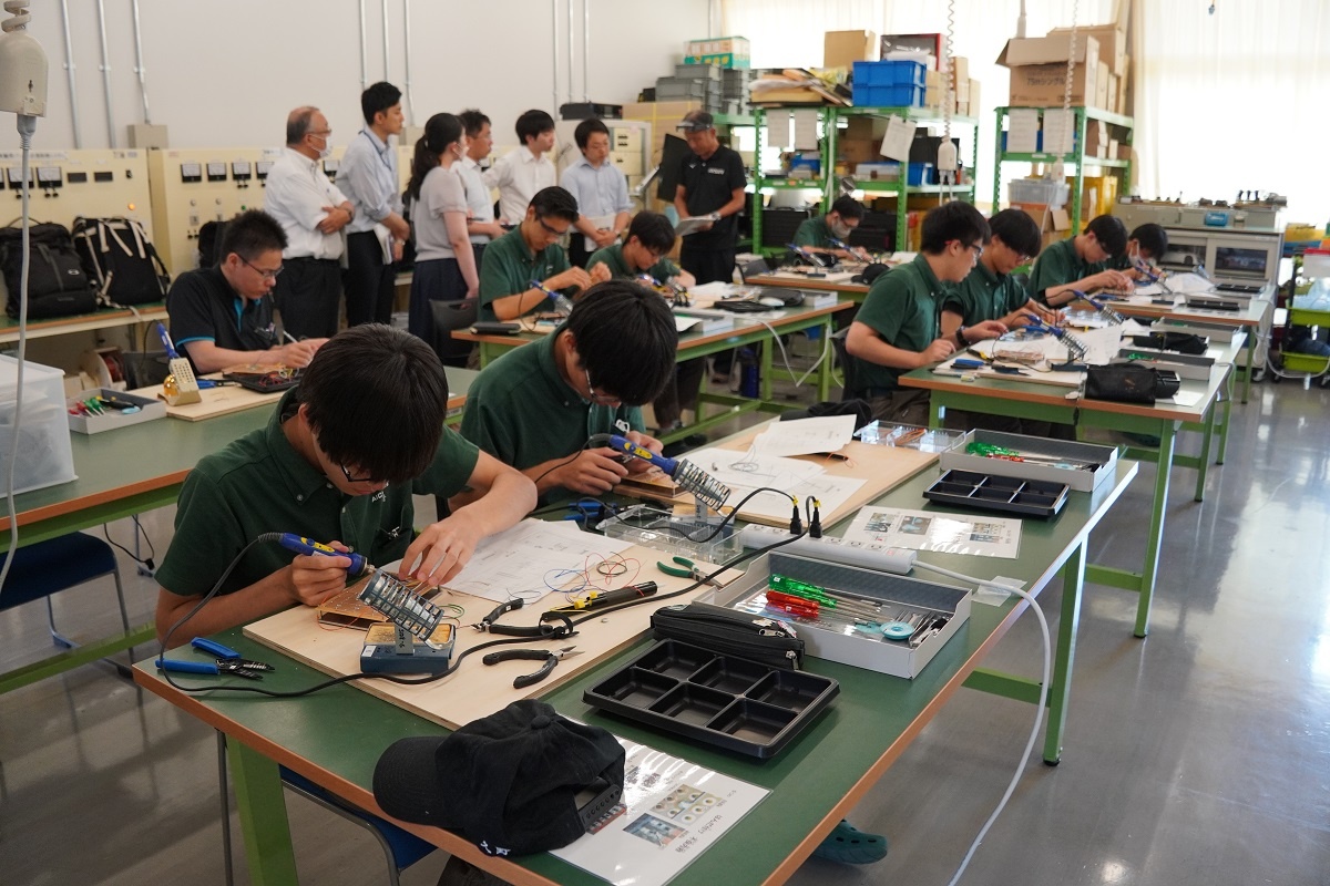今日は1年生がコース実習でした。 自動車・航空コースは「マシニングセンタ」、電気・制御コースは「回路設計実装」、情報・ITコースは「空気圧制御(@SMC)」、電子・ロボットコースは「レーザー加工・プレス板金」に取り組みました。 また今日は文部科学省による視察も行われました。