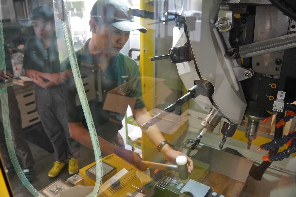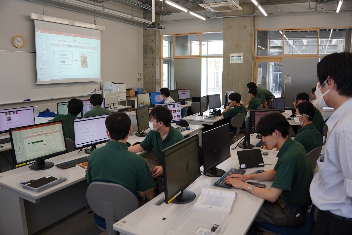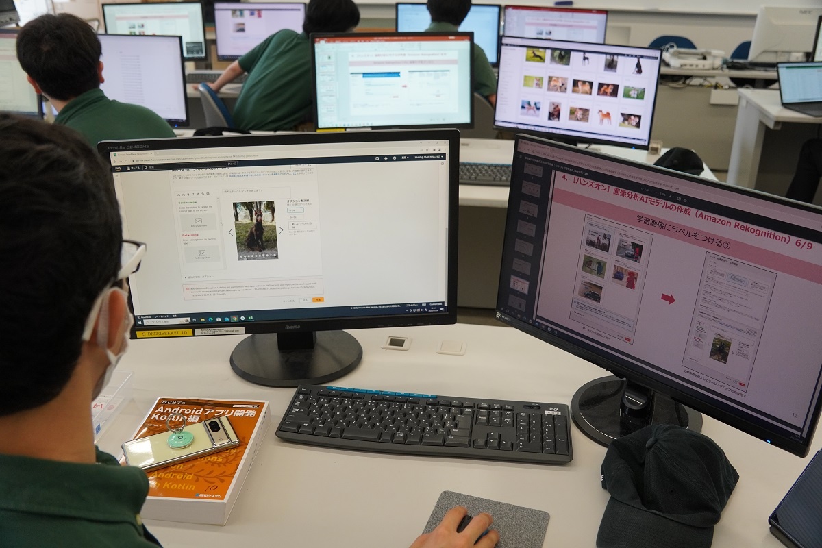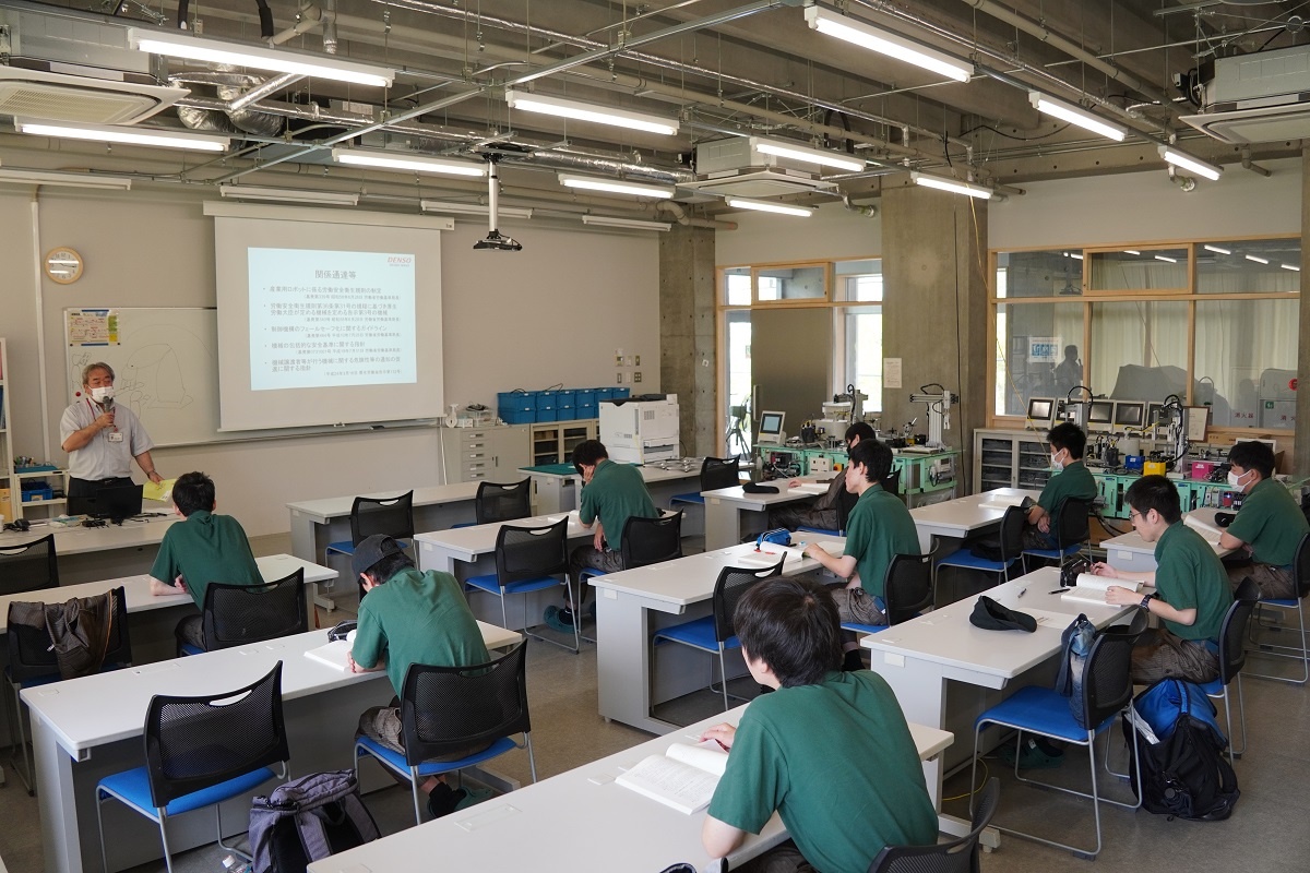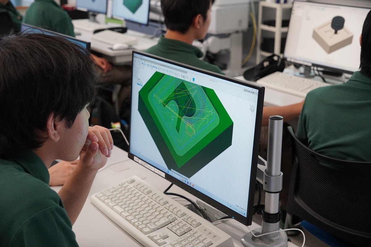 今日は2年生がコース実習でした。自動車・航空コースは「車両開発周辺技術」、電気・制御コースは「ロボット特別教育」、情報・ITコースは「NC加工機」、電子・ロボットコースは「アプリ開発(基礎)」に取り組みました。