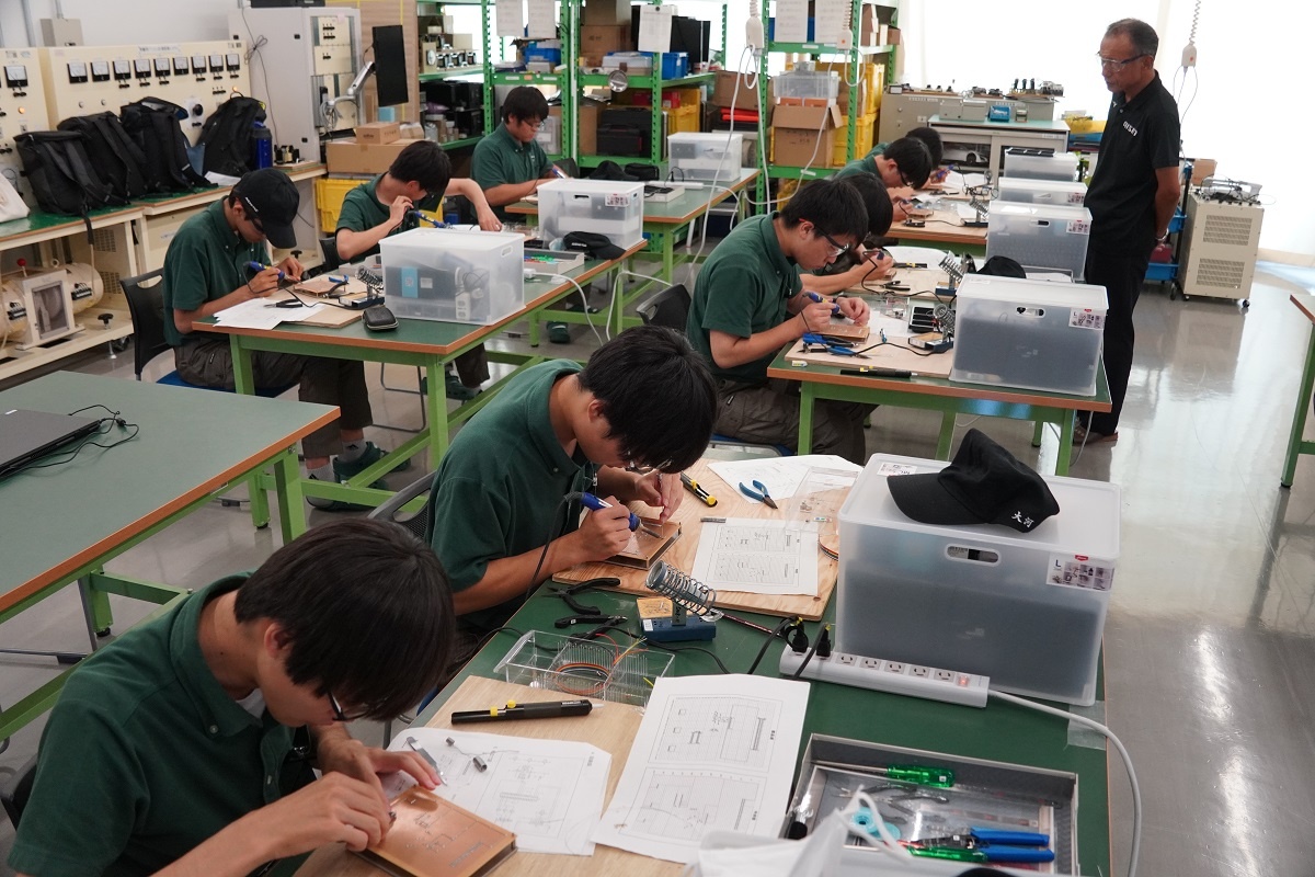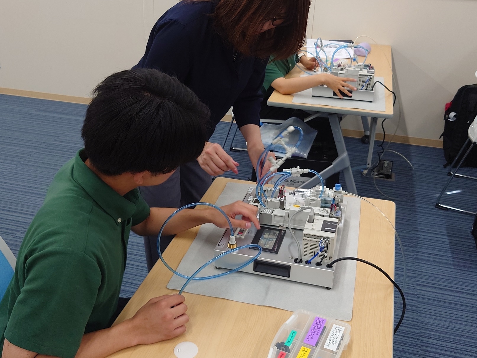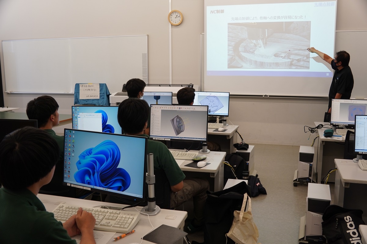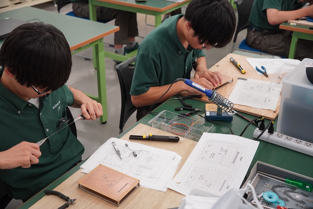 今日は1年生がコース実習でした。自動車・航空コースは「マシニングセンタ」、電気・制御コースは「回路設計実装」、情報・ITコースは「空気圧制御@SMC」、電子・ロボットコースは「レーザー加工・プレス板金@株式会社アマダ」に取り組みました。 これで1年生、2年生ともにコース実習の前期(15回)が終了しました。