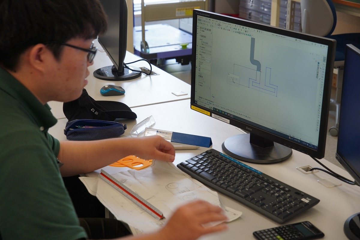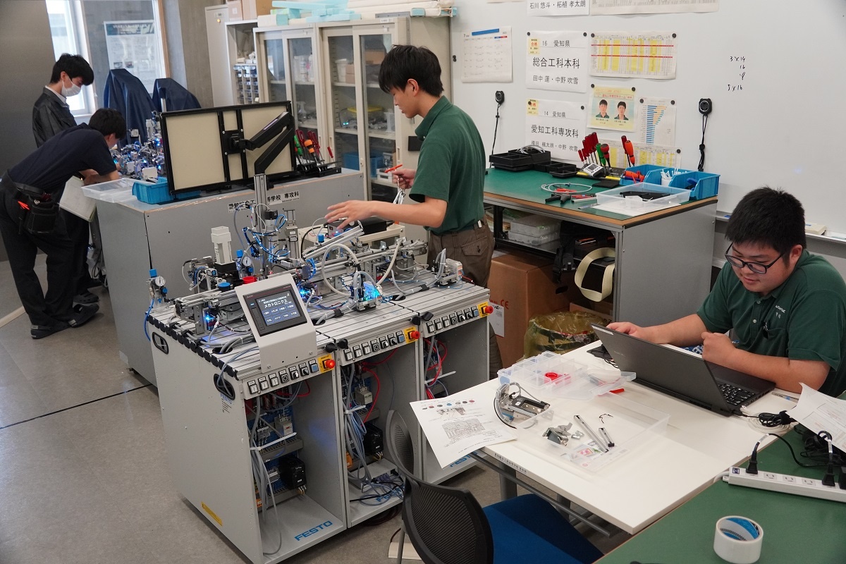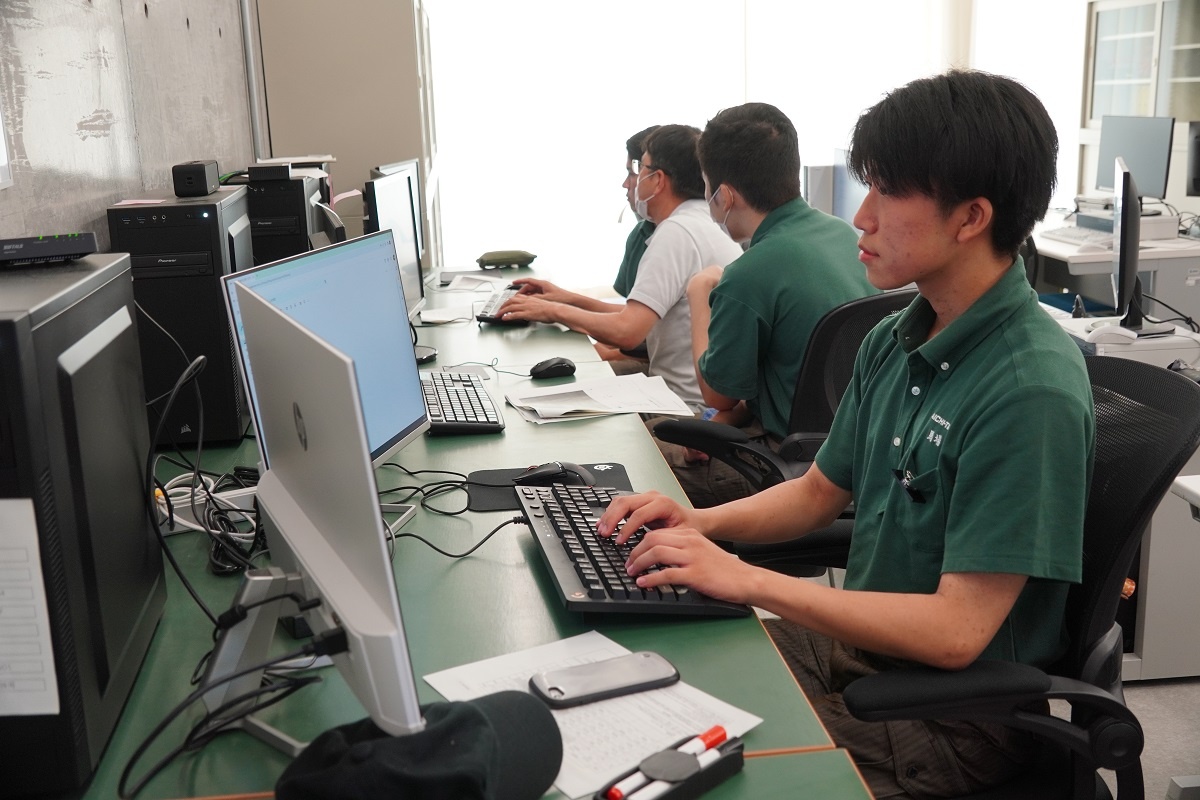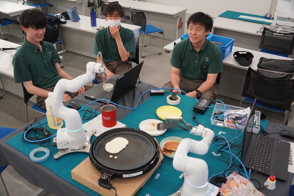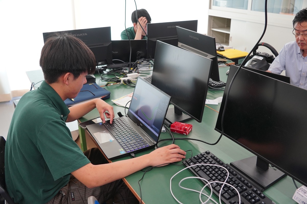 今日は1年生が総合実習でした。「RoboCup競技に向けての創造・開発力の習得」では、プログラムの調整を行い、ロボットが手をたたいたりするなどの様々な動きがスムーズにできるようになりました。