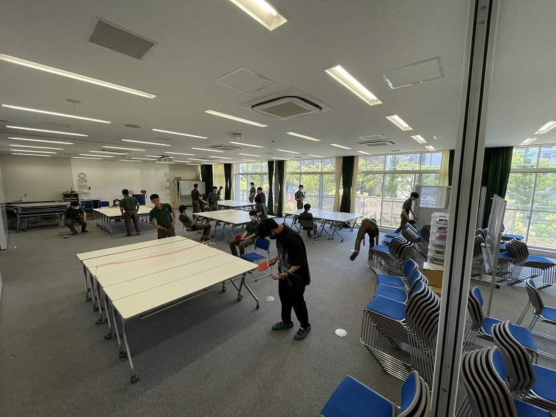 今日は1年生が座学、2年生は補講日でした。 補講の「体育実技」では、卓球に取り組みました。また週末の「2023 Ene-1SUZUKA Challenge」 と「鳥人間コンテスト」に向けて、搬出作業などを行いました。