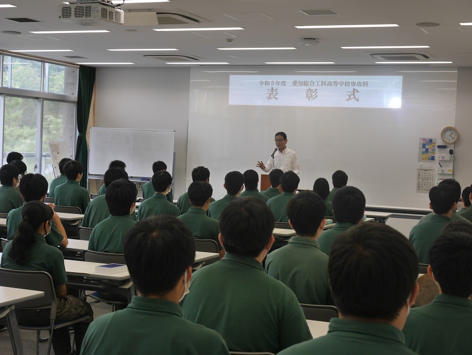 今日から後期の授業が始まりました。今日は座学と1年生・2年生合同の前期表彰式、点呼練習、資格検定希望調査などに取り組みました。前期表彰式では、たくさんの活動成果をお披露目することができました。