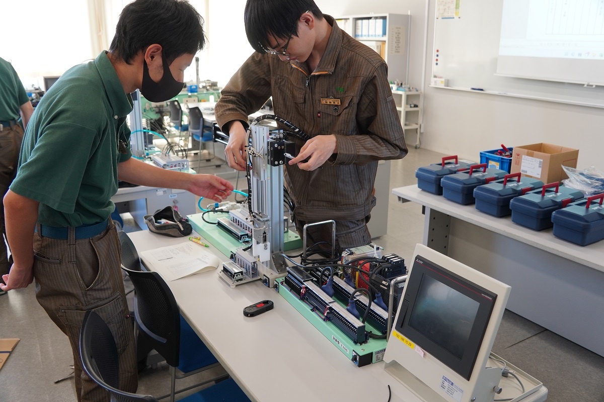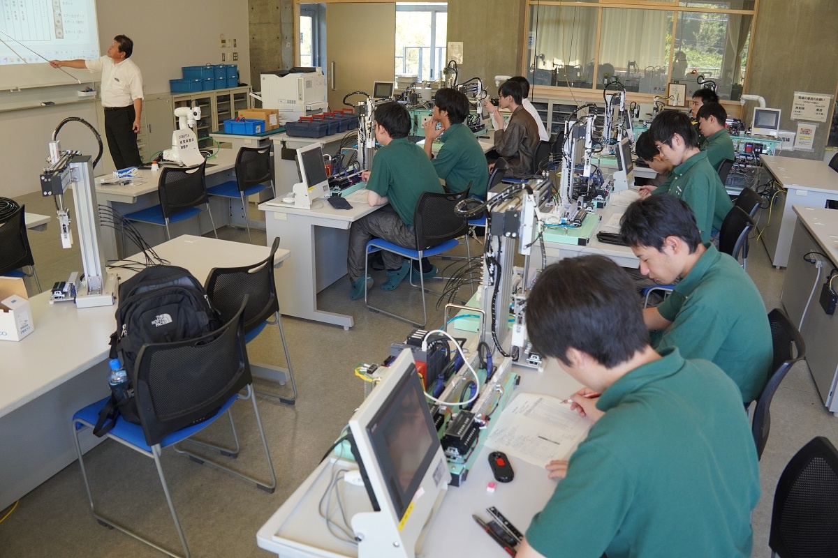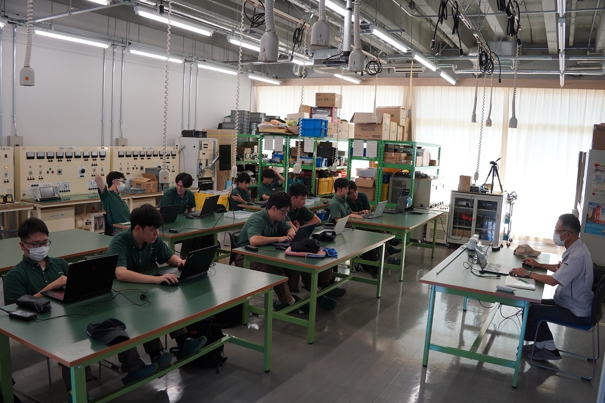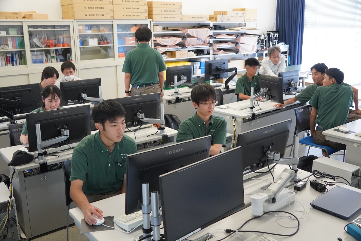 今日はコース実習(2年生)でした。 自動車・航空コースは「CAE解析」、電気・制御コースは「PLC応用」、情報・ITコースは「FPGA」、電子・ロボットコース「電気機器」でした。