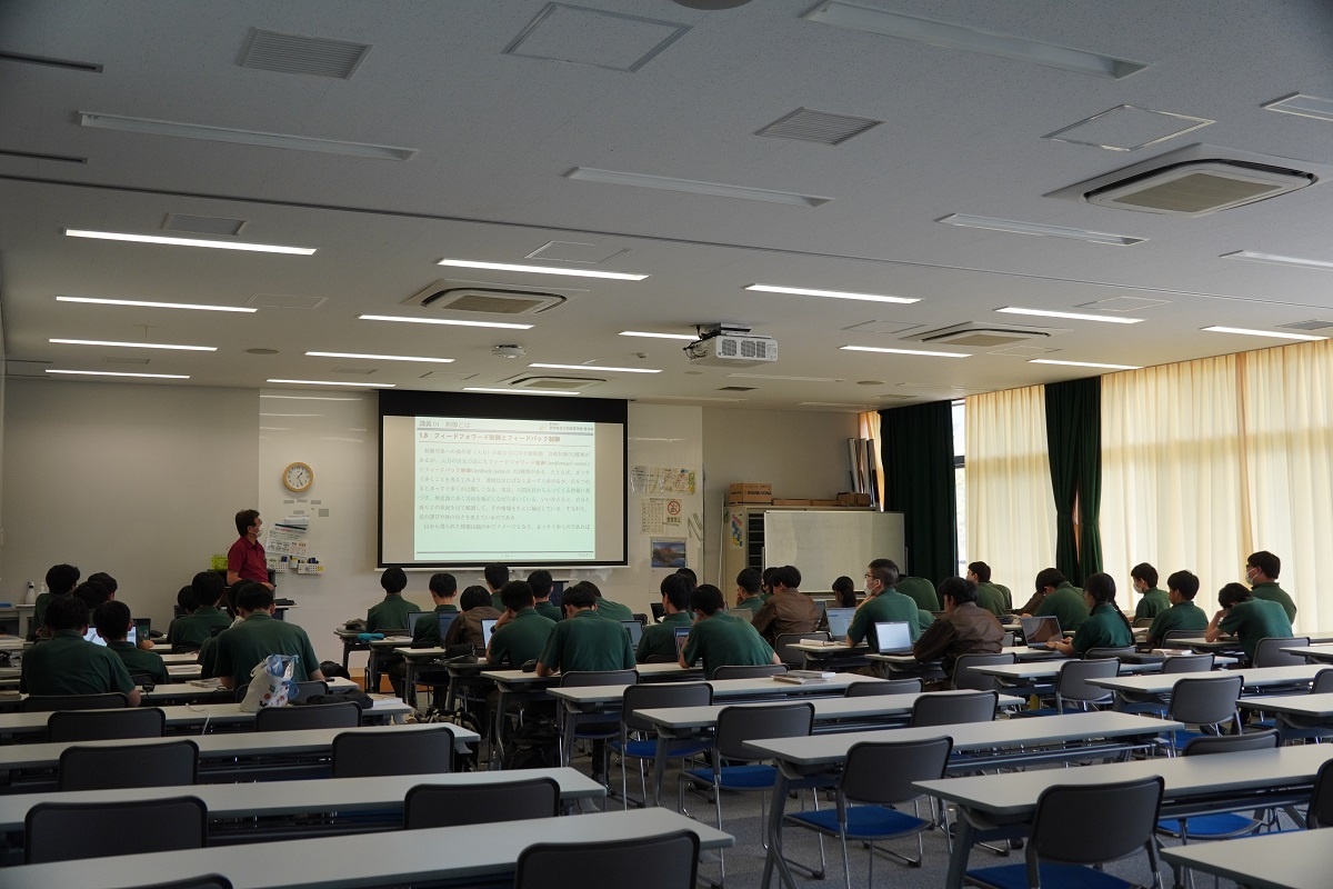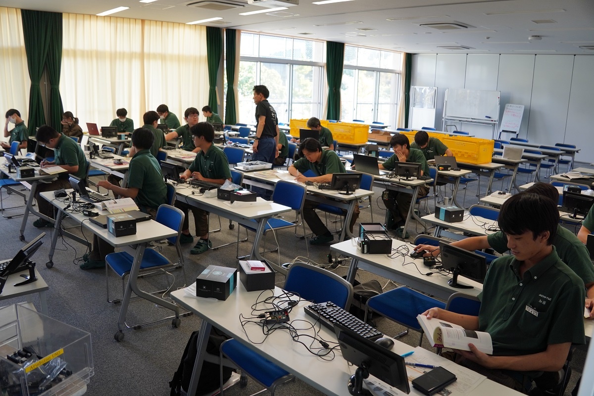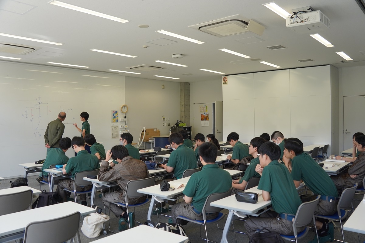 今日は2年生が休講日、1年生が座学に取り組みました。 自動車・航空コースは 「文章表現Ⅱ」「機械機構学」「制御工学Ⅰ」「プログラミング基礎」 電気・制御コースは 「文章表現Ⅱ」「デジタル回路」「制御工学Ⅰ」「電気磁気学Ⅱ」 情報・ITコースは 「文章表現Ⅱ」「デジタル回路」「制御工学Ⅰ」「情報通信・ネットワーク」 電子・ロボットコースは 「文章表現Ⅱ」「機械機構学」「制御工学Ⅰ」「プログラミングⅠ」にそれぞれ取り組みました。