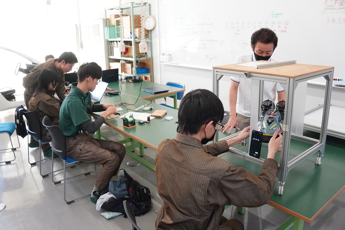 今日は「総合実習(2年生)」でした。 「アグリテクノロジー機器の開発と知的財産化」班は、土を乾かすための装置を作っています。今日は、中の様子を観察するための窓部分の作成をしました。塩ビシートをヒートガンで加熱し半円状に成形する加工では、思うように変形せず苦戦をしましたが、何とか完成させることができました。
