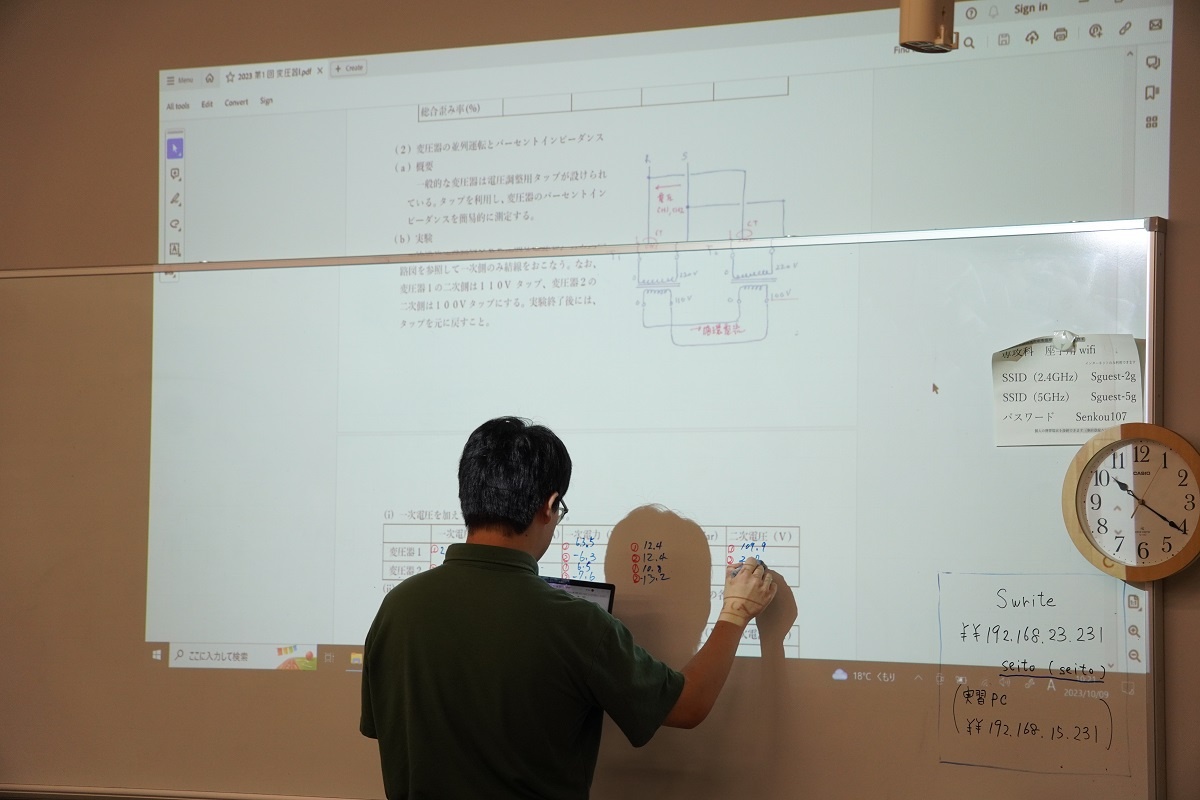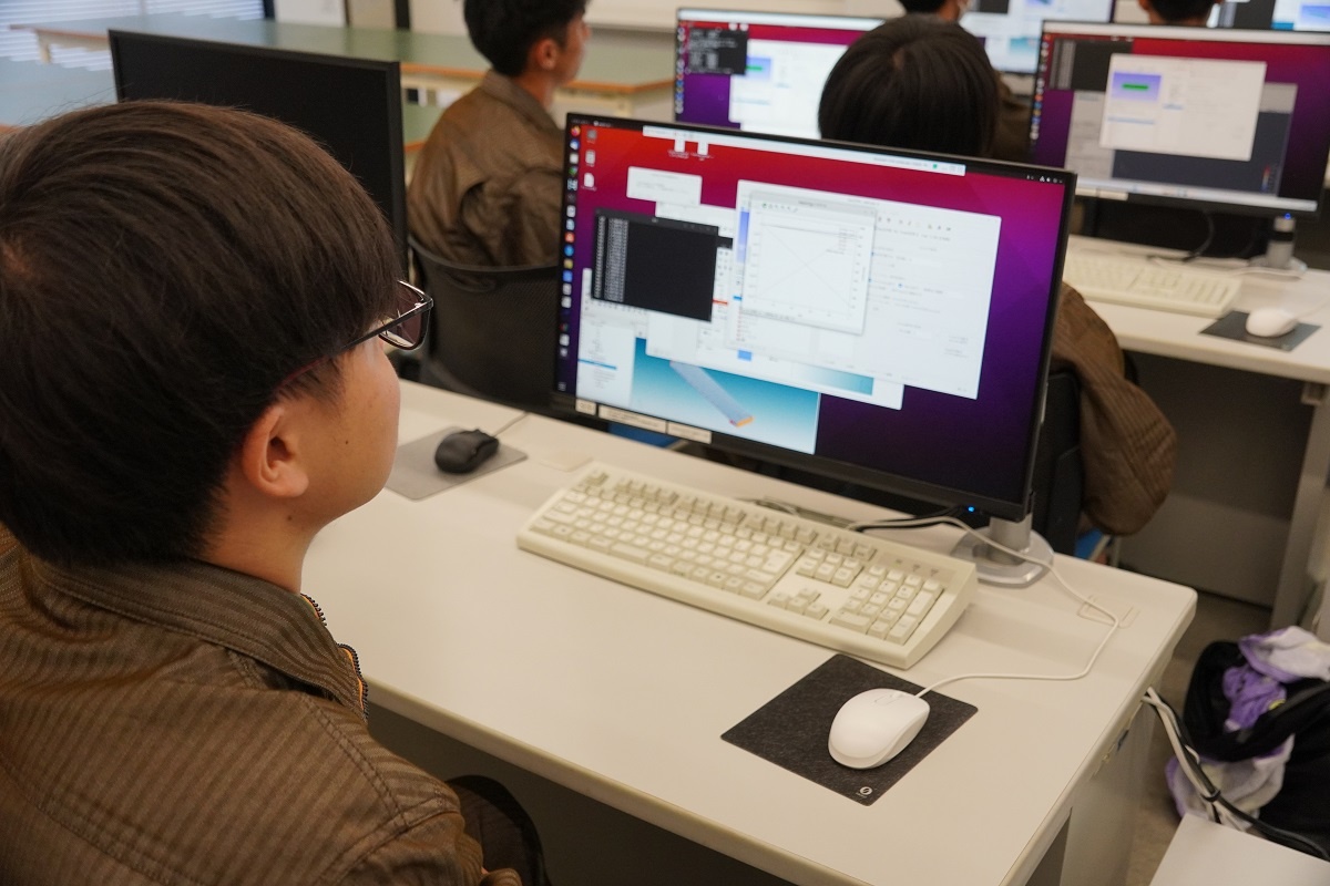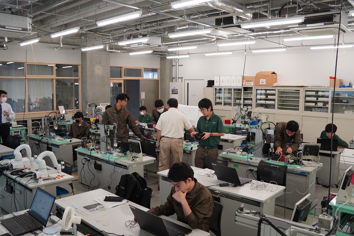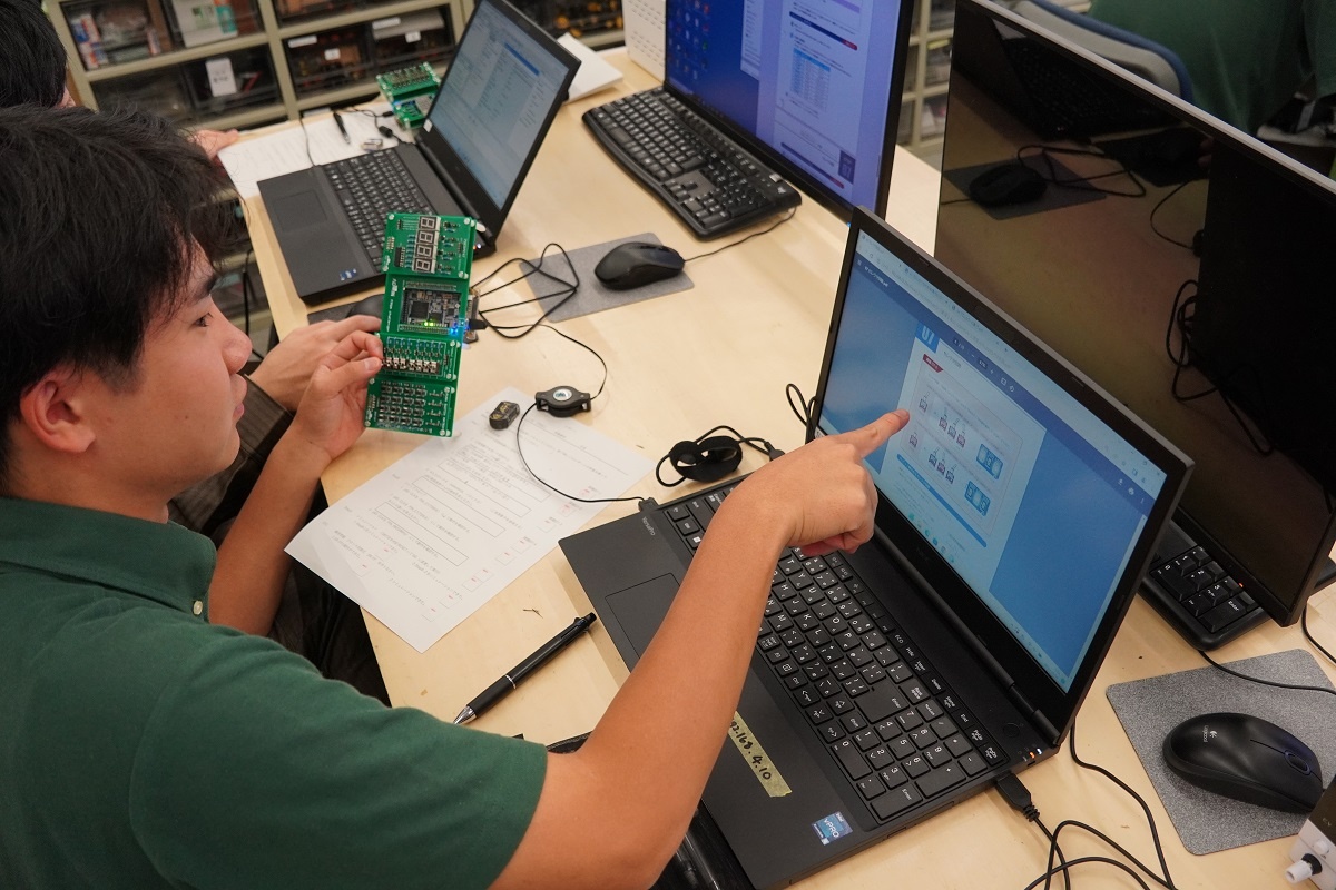 今日は2年生が授業日で、「コース実習(2年生)」でした。 自動車・航空コースは「CAE解析(EasyISTR)」、電気・制御コースは「PLC応用(センサ)」、情報・ITコースは「FPGA(回路シミュレーション)」、電子・ロボットコースは「電気機器(変圧器)」に取り組みました。