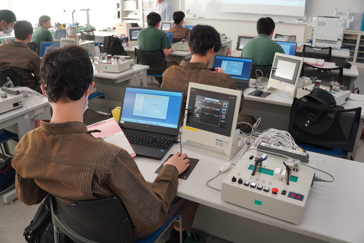 今日はコース実習(2年生)でした。自動車・航空コースは「内燃機関先端技術(高効率Gas.Eng@パーソル」、電気・制御コースは「車両開発周辺技術(車両評価)」、情報・ITコースは「パワーエレクトロニクス@三菱FAセンター」、電子・ロボットコースは「操作パネル設計(GOTプログラミング基礎)」にそれぞれ取り組みました。