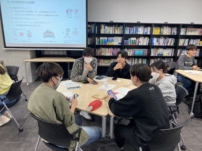 今日は「英語コミュニケーション」や1年生・2年生合同の「総合演習(資格検定)」に取り組みました。 また、授業後は名城大学 天白キャンパスにてLINEヤフー(株)と名城大学が共催するハッカソンイベント「Hack U 名城大学 2023」のキックオフイベントに、1年生10名が参加しました。 名城大生と協力し、身近な困り事とその解決策について考えるグループワークを行った後、チーム分けを行いました。これから開発を進めていくチームメンバーと積極的にコミュニケーションをとっていました。