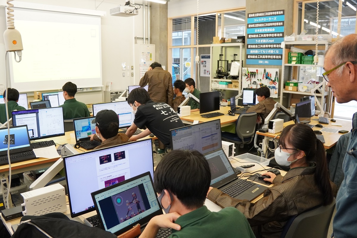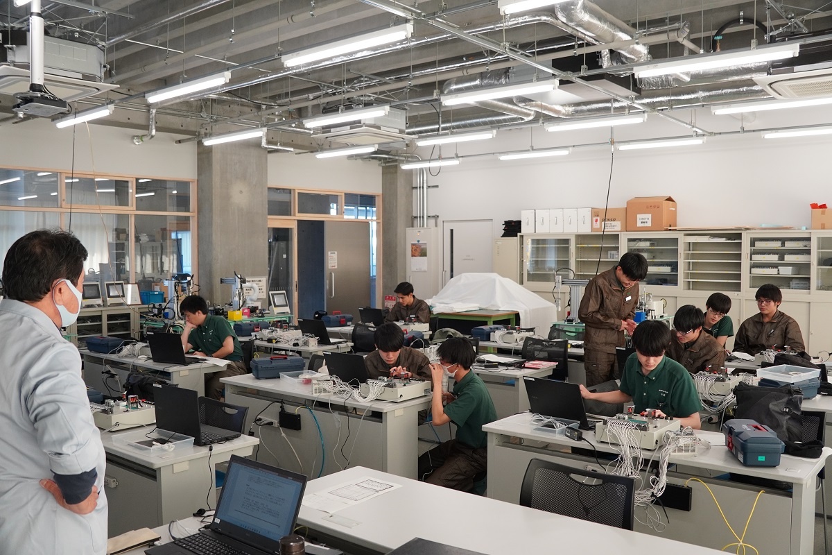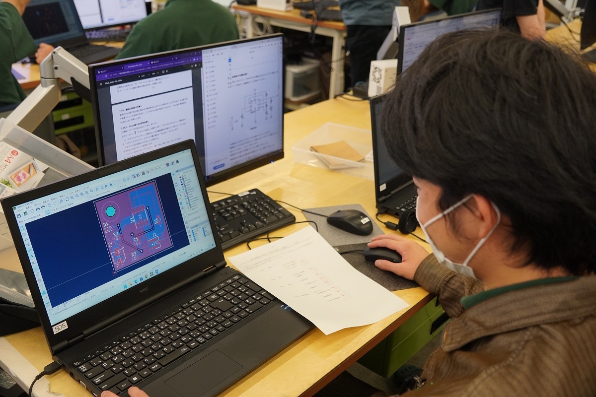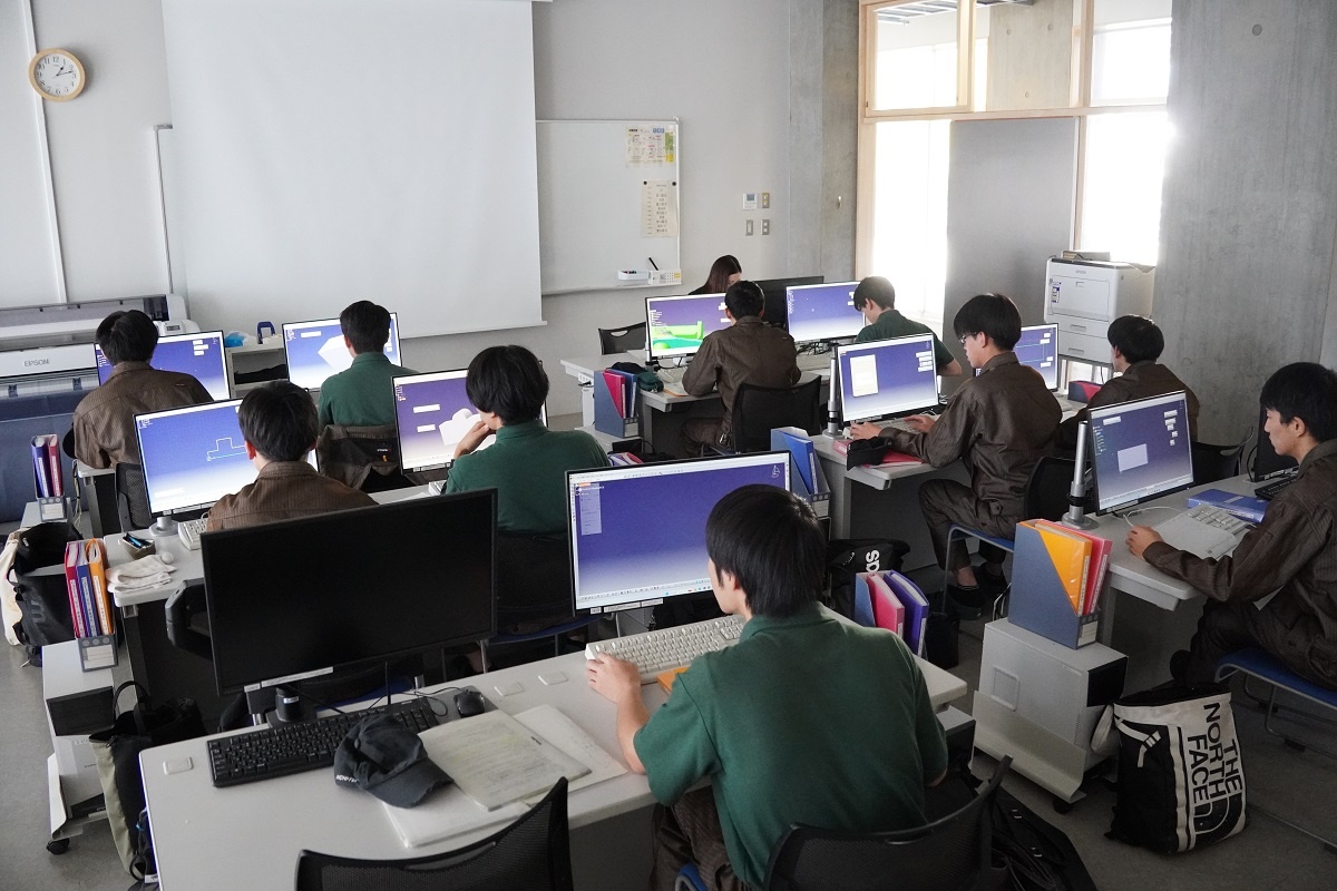 今日はコース実習(1年生)でした。 自動車・航空コースは「CAD(作図、組立)」、電気・制御コースは「シーケンス・PLC(応用命令)」、情報・ITコースは「電子回路設計・製作1(基板設計、発注)」、電子・ロボットコースは「Pythonプログラム応用(画像処理)」に取り組みました。