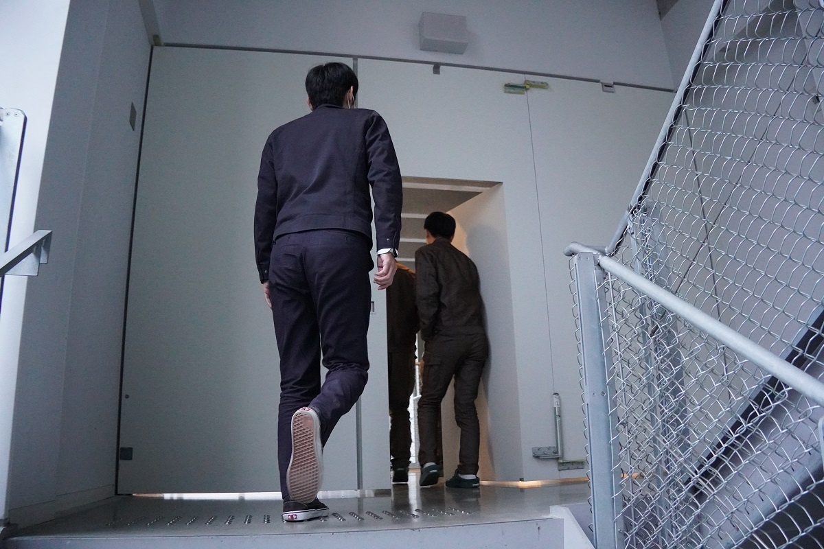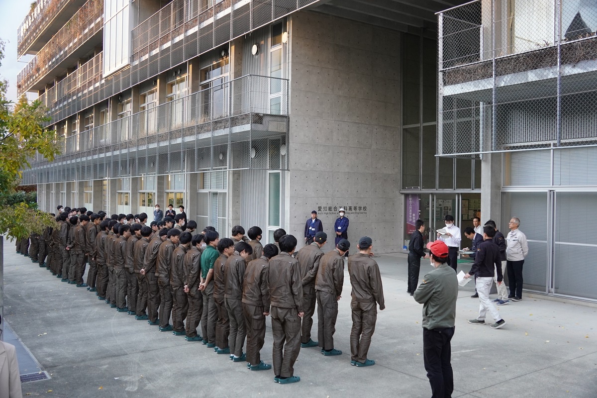また授業後は、火災発生の想定で第2回防災訓練が行われました。初めて防災扉が閉まった状態で避難訓練を行い、最後に防災センターの方から防災扉の仕組み等の話を聞きました。