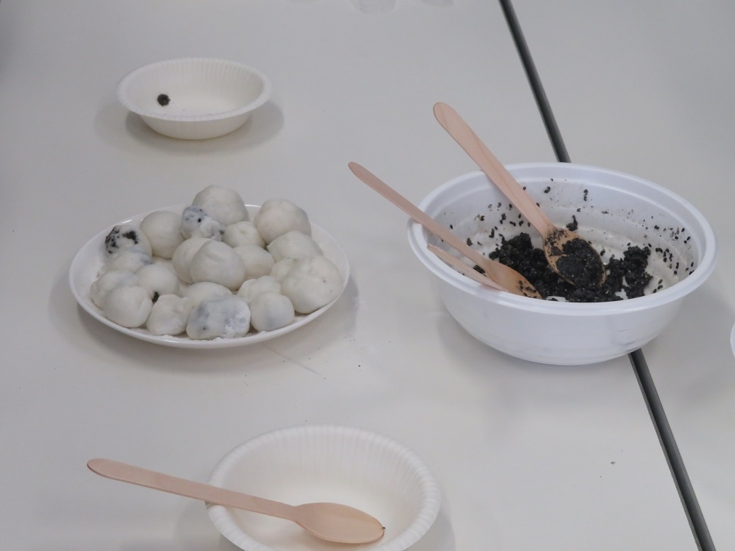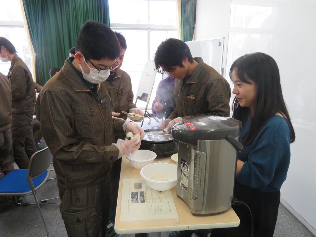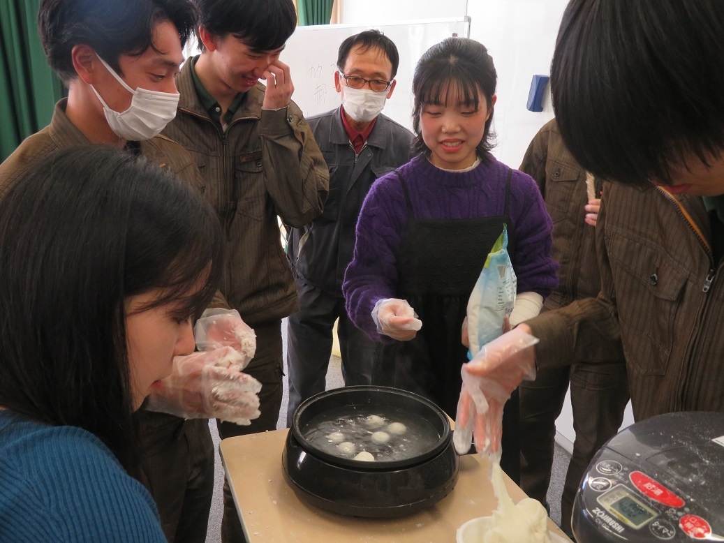 今日は補講日でした。 2年生「中国語」の授業では、中国の伝統的な屋台など外で食べる軽食やデザートのひとつで、もち米を丸めて作り、冬至や春節の風物詩的な食品である『湯圓(タンユェン)』という料理作りに取り組みました。普段は、中国語を学ぶ座学ですが、楽しく中国文化に触れる機会となりました。