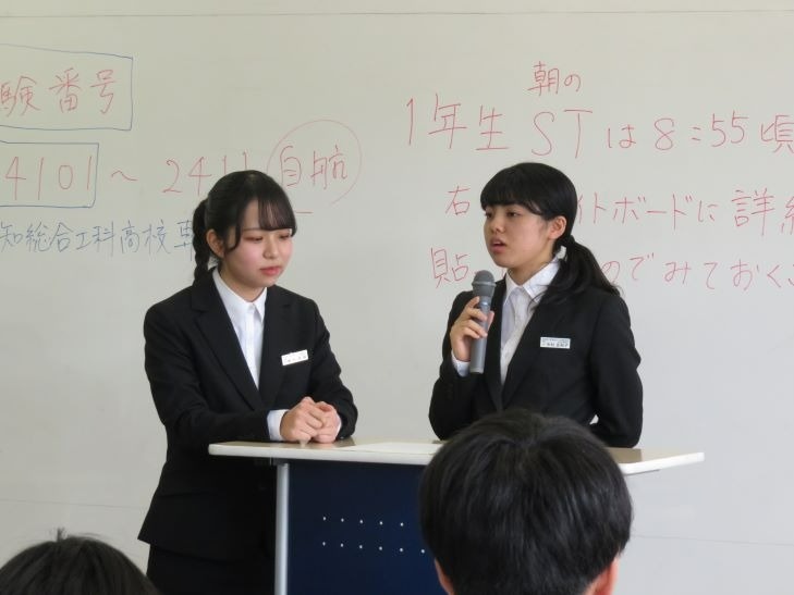 今日は1,2年生合同で始業式と対面式を行いました。対面式では1年生代表として中村君、2年生代表として佐々木君が挨拶をしました。またクラス写真撮影や学力診断テストなどの実施や、2年生から1年生に向けてのタイの交換留学やピアサポートの説明なども行われました。