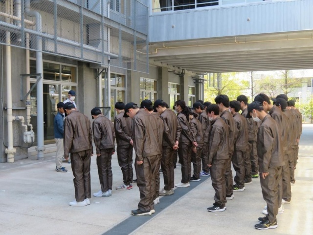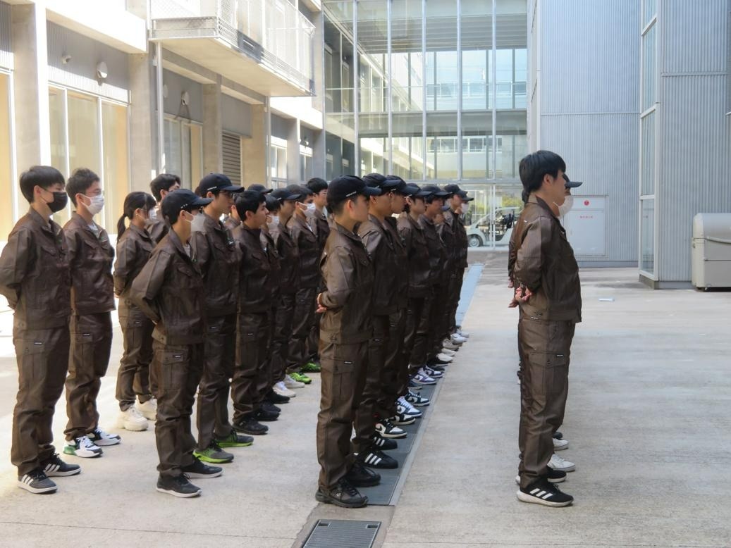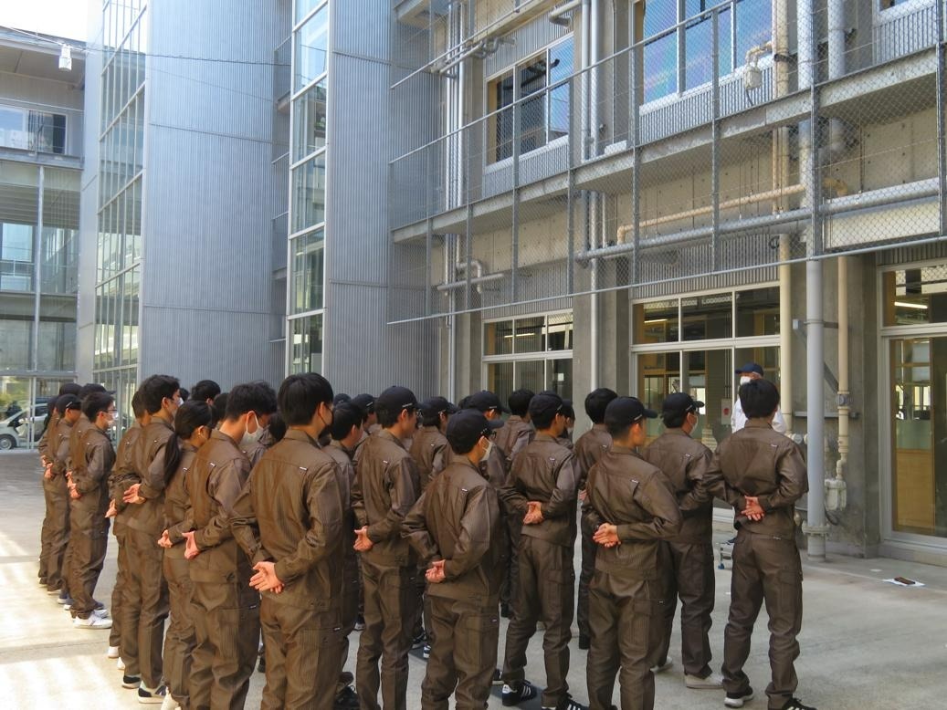 本日の午前は点呼練習を行いました。専攻科では実習の行われる日に朝礼・終礼として点呼を行います。ガイダンスを受けた後コースごとに整列や号令の練習に取り組みました。また1年間取り組む総合実習のオリエンテーションや実習室案内、コースリーダー決めなどを行いました。