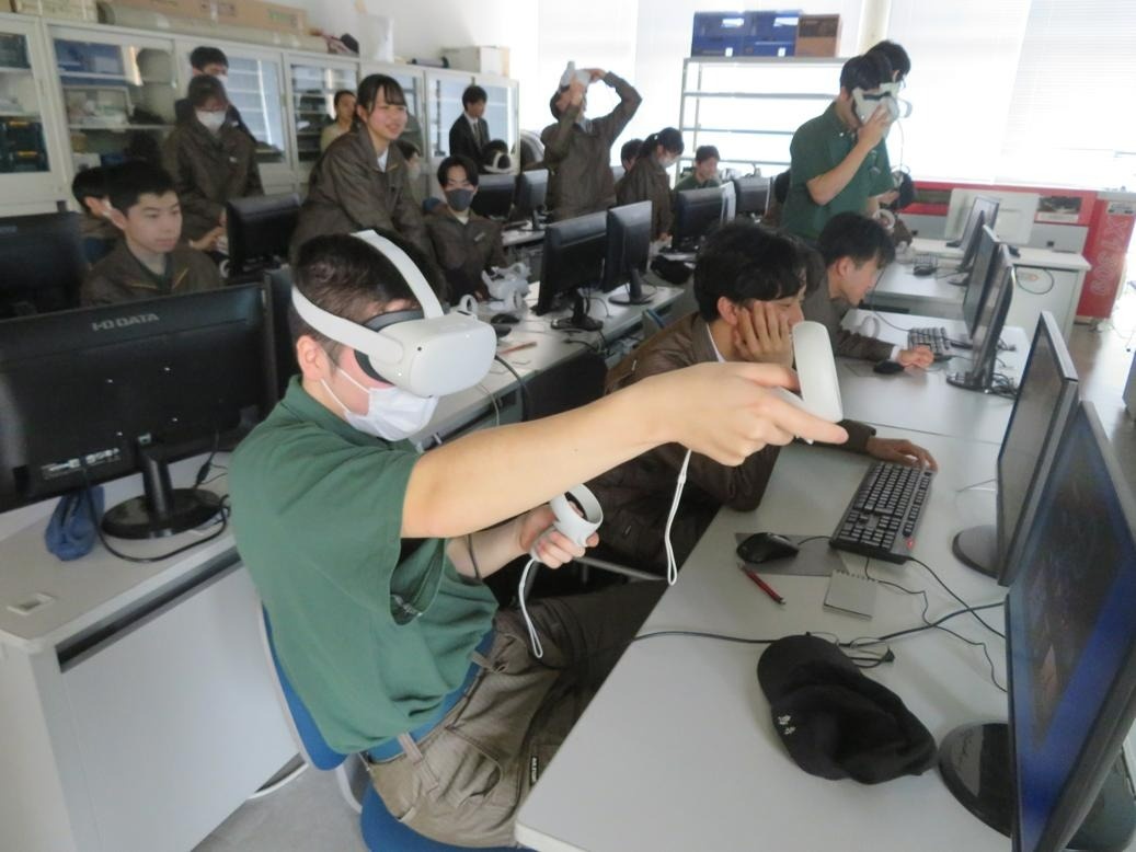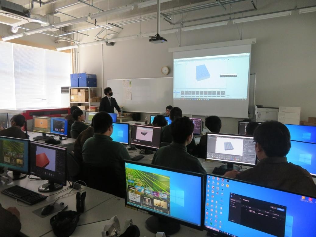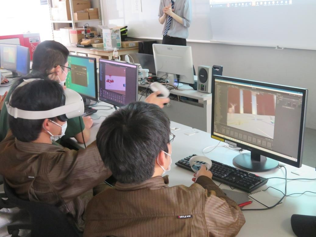 本日、1年生は全コース合同でVR・ARについてイクスアール株式会社様の講義を受講しました。Unityを用いたVRアプリケーションの開発に取り組みました。