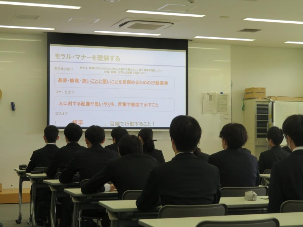 今日の3限では日本サービスマナー協会様による「モラル・マナー研修」を行いました。 挨拶やお辞儀などの所作や服装などの基本的なマナーから、傾聴スキルを鍛えるペアワークなども行い、社会人になるまでに身に付けたいスキルを学びました。