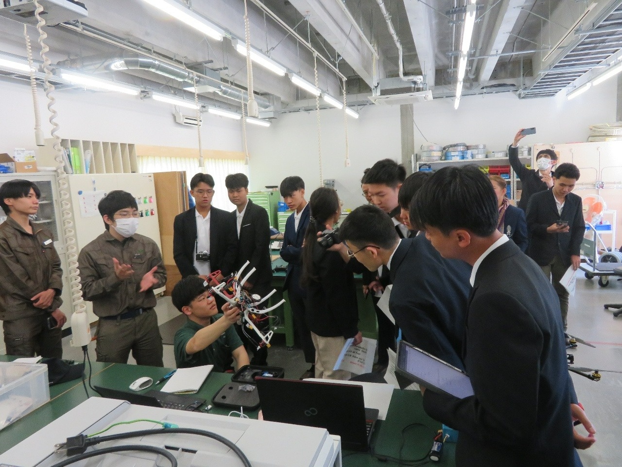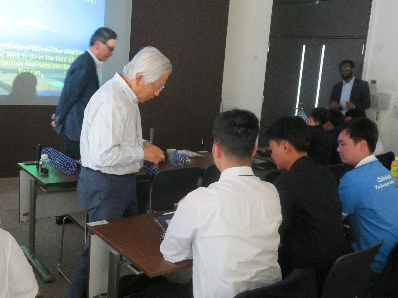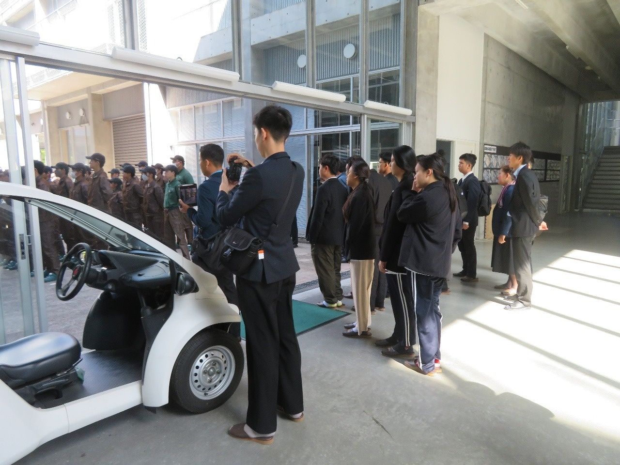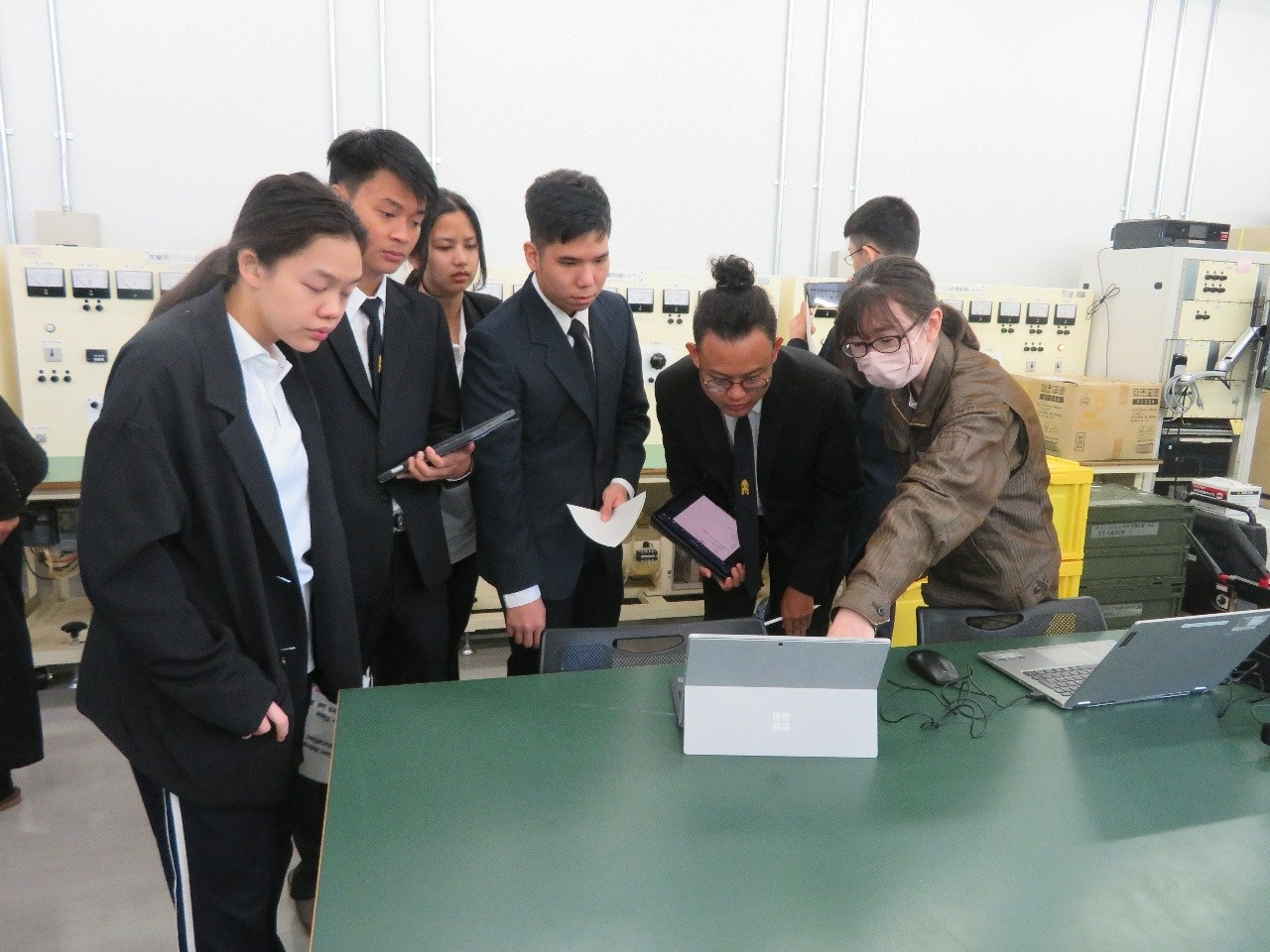 今日の午前中はチットラダー工科大学の皆さんが来校し、点呼の見学や総合実習の見学・体験などを行いました。午後は名城大学にて飯島教授の特別講義を受講しました。
