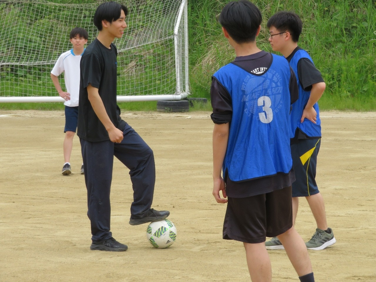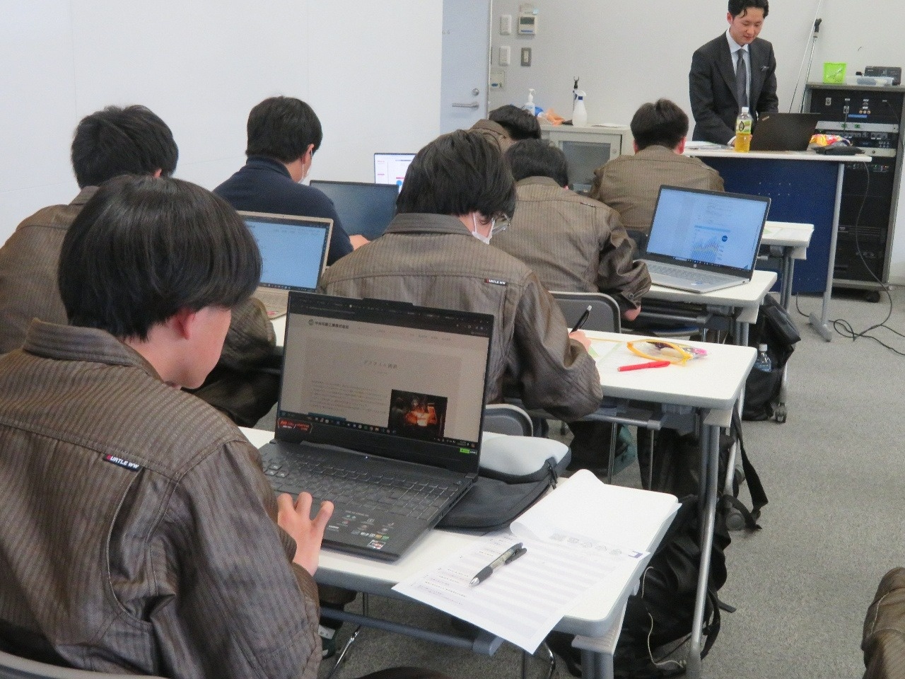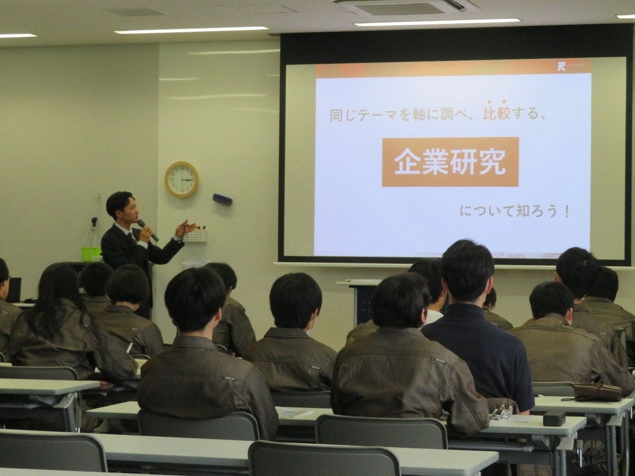 今日の午前中、1年生は本科のグラウンドを使ってサッカー、午後はキャリアプランニングの授業を行ないました。業界研究の進め方や、ランダムに選んだ会社についての調べ学習などを行ない、就職活動の進め方を学びました。