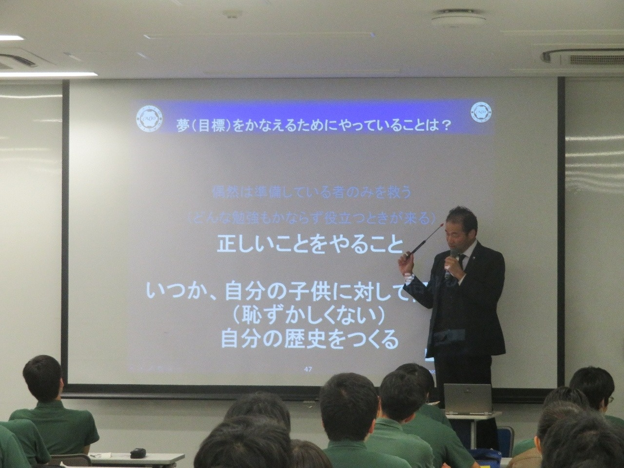 今日の総合演習では、1・2年生合同で講演会が開かれました。キャリオ技研(株)から富田茂様にお越しいただき、将来像やキャリアに関する貴重なお話を伺いました。生徒達からは、「『学歴フィルター』についてどのように考えてらっしゃいますか?」「起業しようと思ったきっかけは?」などの質問が挙げられました。