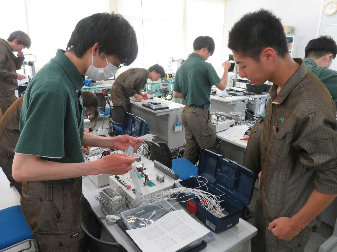 今日は1・2年生合同で「総合演習(資格検定)」がおこなわれました。電気工事士、数学、TOEIC、電気保全、機械保全、機械・電気基礎、基本情報、シーケンス制御、CADの9つの中から希望するコースに分かれ、検定取得に向けて座学や実技に取り組みました。