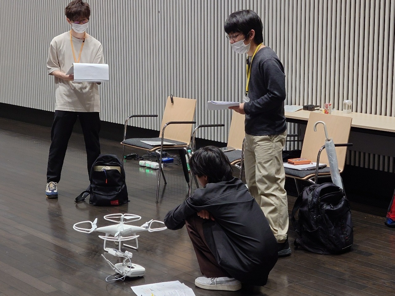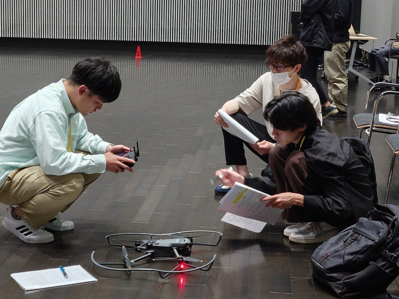 今日の2年生は総合実習でした。「ドローンの研究(国家資格の研究と取得及び姿勢制御の学習)」班は、国家資格である無人航空機操縦士免許の取得に向けた実技指導を受けるため、中京テレビ本社ホールに伺いました。免許の取得にはドローンに関する知識だけでなく、ドローンを操縦するスキルも求められるため、生徒達は熱心に実技の訓練に取り組みました。