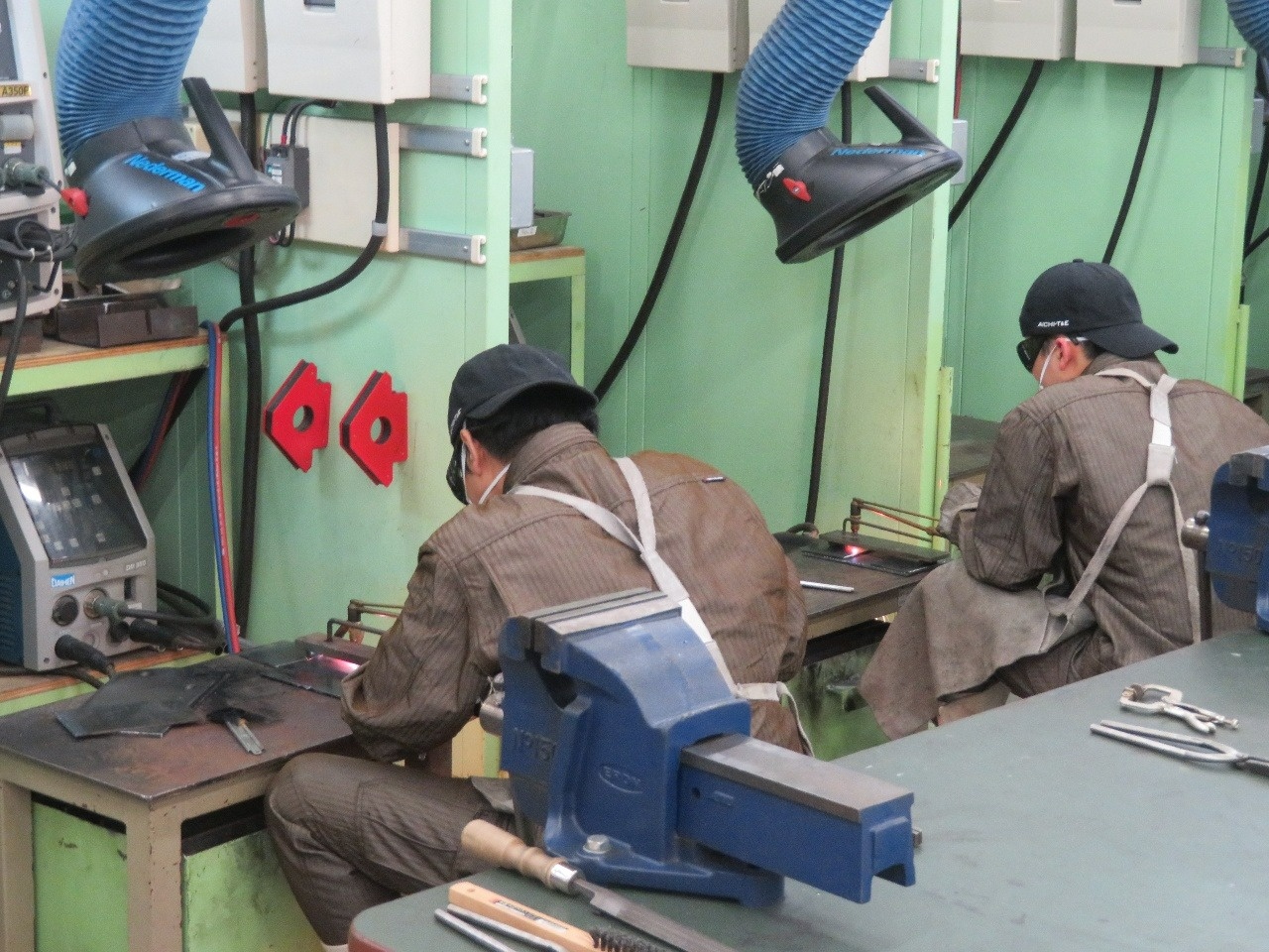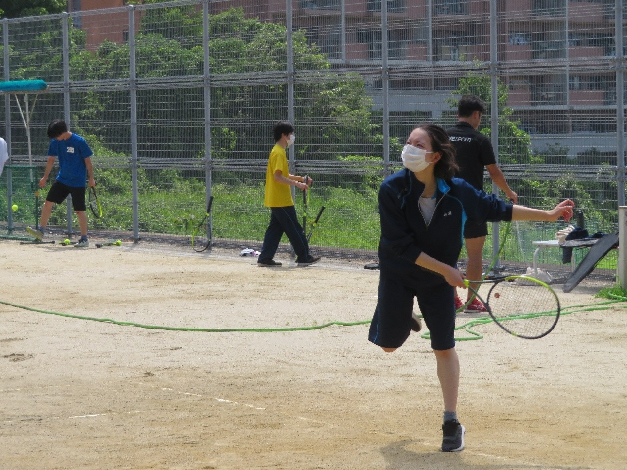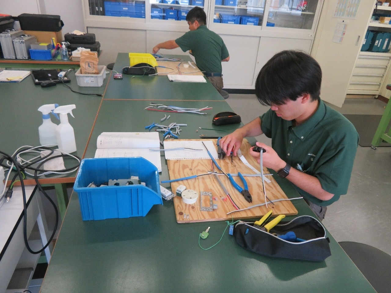 今日は『体育実技』『英語コミュニケーション』『総合演習』『キャリアプランニング』などに取り組みました。『体育実技』はテニスコートでテニスをおこないました。また、『総合演習』は3回目の資格検定の授業でした。「機械・電気基礎」のショップでは溶接をおこなっていました。