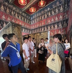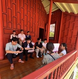 今日は海外研修の四日目でした。午前はタイ最大の博物館であるバンコク国立博物館へ文化見学に行き、王族ゆかりの伝統的な品や、釈迦にまつわる美術品を通してタイの歴史や文化を学びました。午後は『アップサイクル・リサイクルのためのイノベーション』というテーマでハッカソンをおこないました。ハッカソンとは、短期間で集中してアイデアを形にする開発イベントのことです。CDTIの学生達と協力しながら、アイデア出しに取り組みました。