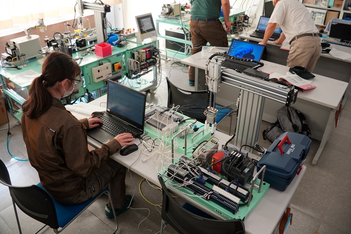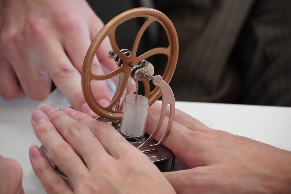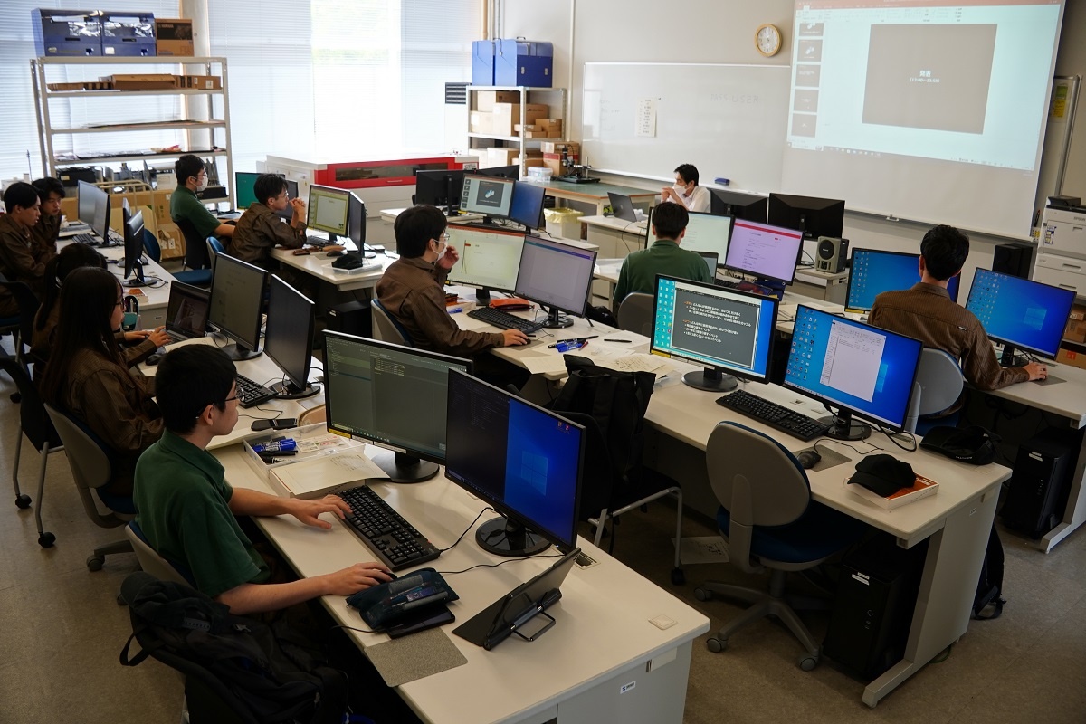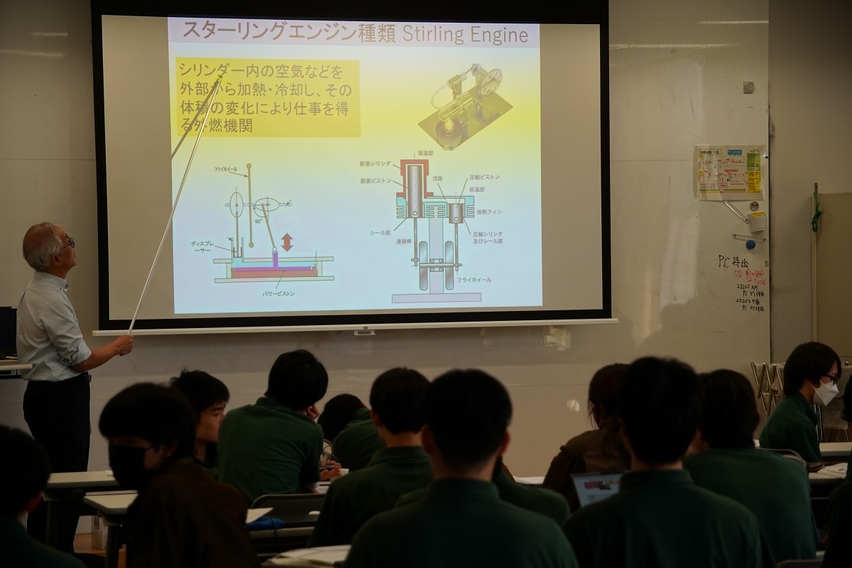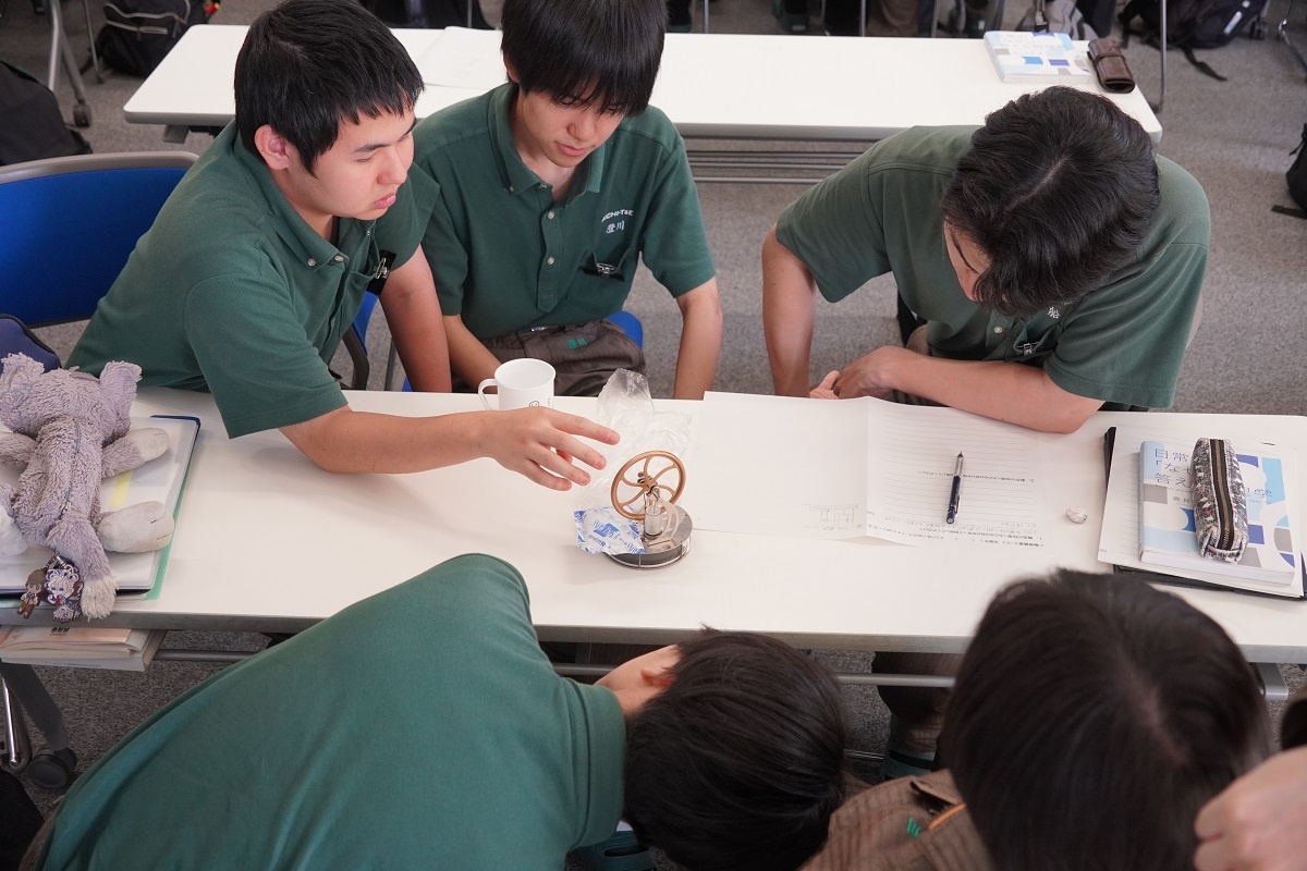 今日は2年生がコース実習でした。自動車・航空コースは「航空機製造」、電気・制御コースは「空気圧制御@SMC」、情報・ITコースは「アプリ開発」、電子・ロボットコースは「操作パネル設計」に取り組みました。 また、1年生3限「物理学Ⅱ」では、外燃機関の一つであるスターリングエンジンを動かしました。簡単な仕組みと少しの温度差で良くはずみ車が回転するのに驚く生徒が多かったです。