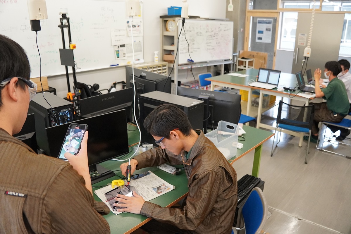 また午後には、本科 理工科の生徒12名が専攻科の実習室や機械を使い、使い方などを学ぶ取組が行われました。