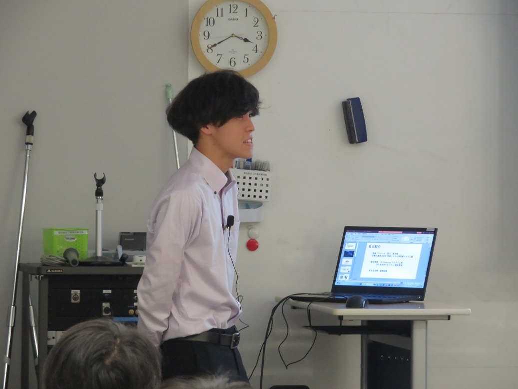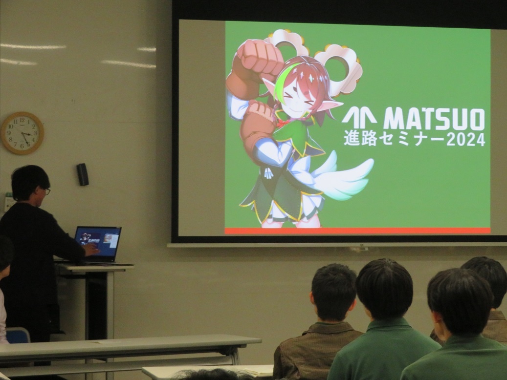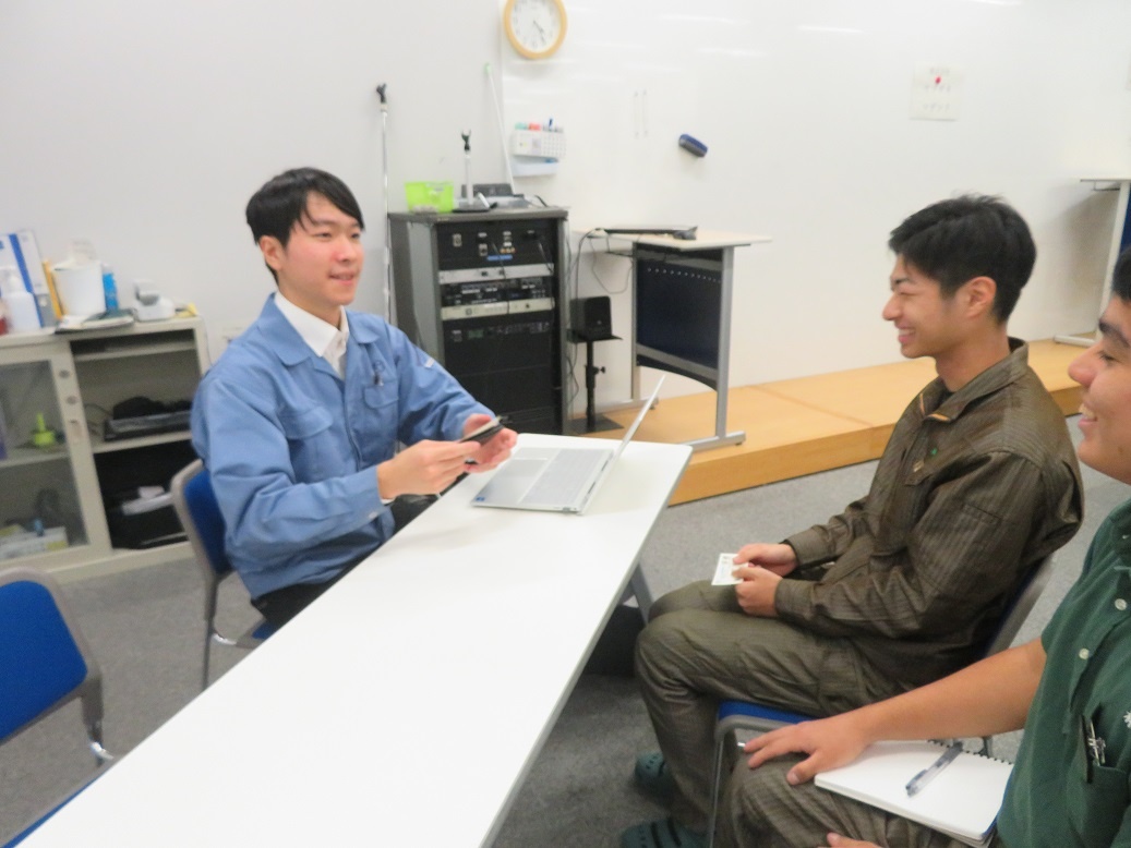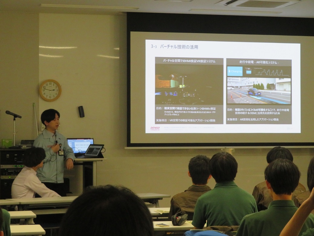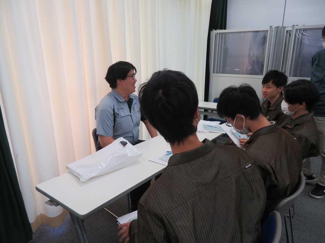1年生4限「総合実習」では『進路セミナー2024』が行われ、専攻科修了生7名が「専攻科での取組と会社での働き」というテーマで講演をしてくれました。 ディスカッションも行われ、進路を考えたり、2年間の専攻科生活を送ったりするうえでの経験談など、実際の先輩の交流という貴重な経験をすることができました。