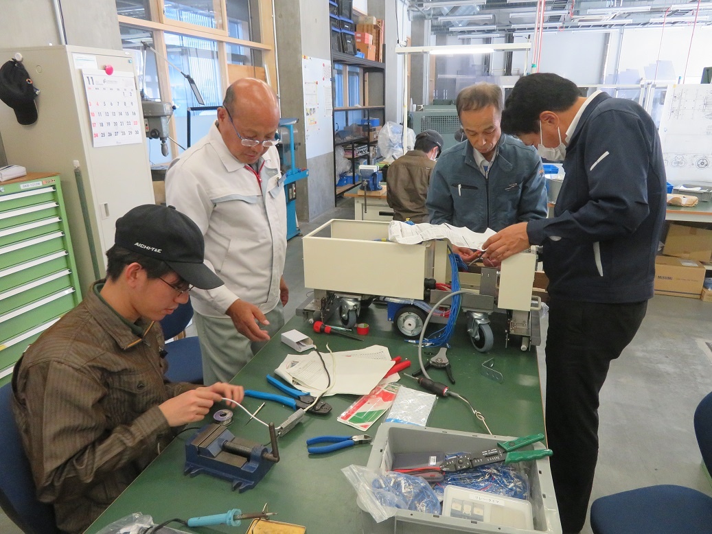 今日は1年生が総合実習でした。技能五輪全国大会に向けて取り組む班、年末の納期に向けて取り組む班、来年度の活動に向けて準備をはじめている班など、それぞれ色んなことに取り組んでいます。