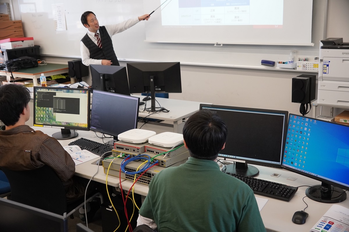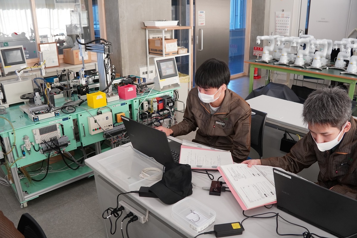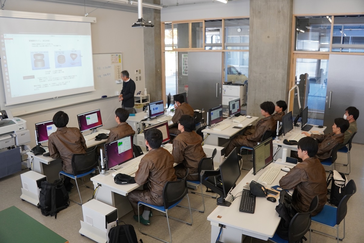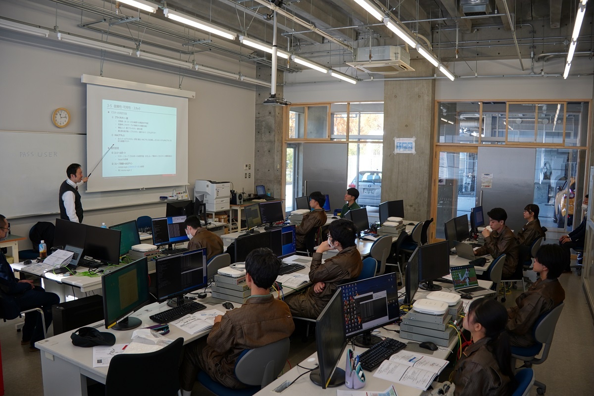 今日は2年生がコース実習でした。自動車・航空コースは「CAE解析」、電気・制御コースは「パワーエレクトロニクス@三菱電機」、情報・ITコースは「ネットワーク」、電子・ロボットコースは「サーボ制御」に取り組みました。