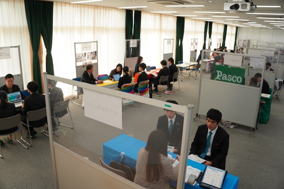 今日は1年生を対象に第2回業界研究セミナーが行われました。 2部制で40社に参加いただきました。生徒は興味のあるブースを回り、各業界、業種、職務内容など、自分の進路選択に向けて大変参考になりました。