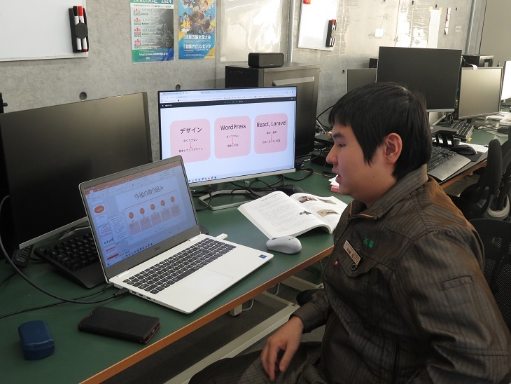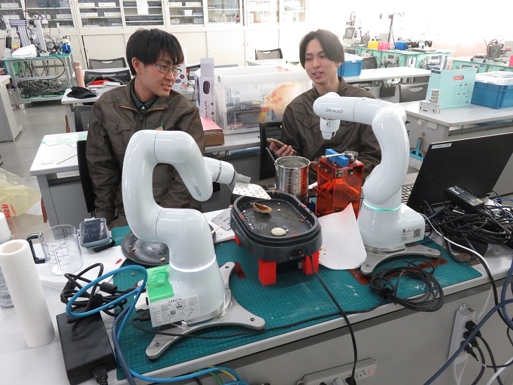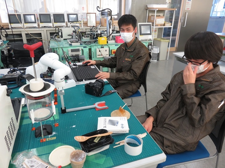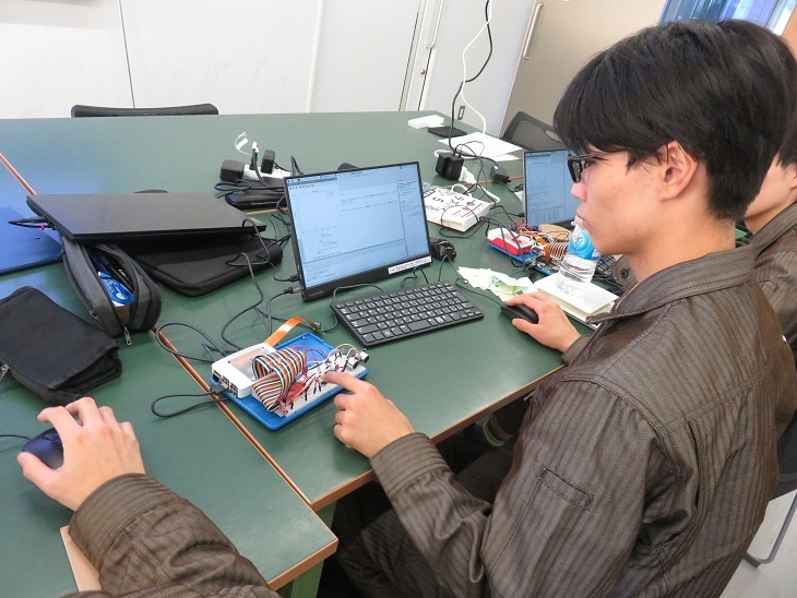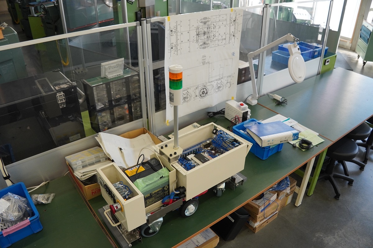 今日は1年生が総合実習でした。株式会社フジワとの共同開発に取り組んでいる「マシンデバイスの共同開発」班は、AGVの配線など最終確認を行いました。来週はいよいよ走行できるようで楽しみです。 ※AGV…Automatic Guided Vehicle(無人搬送車)