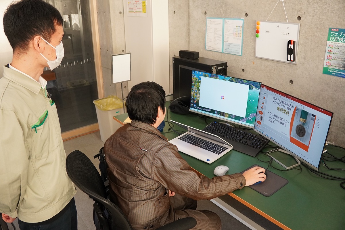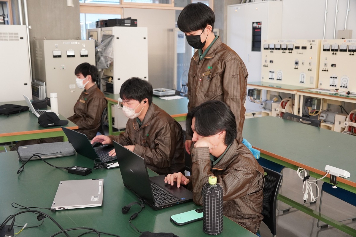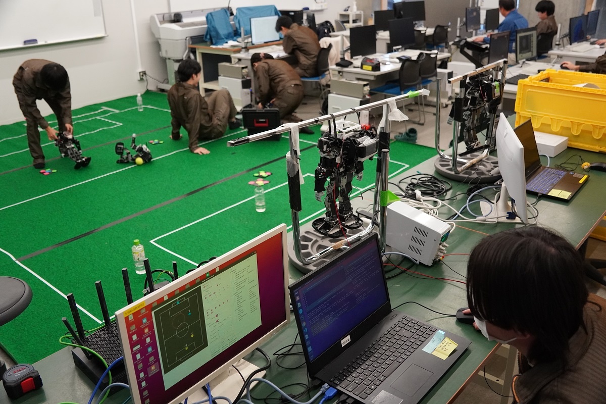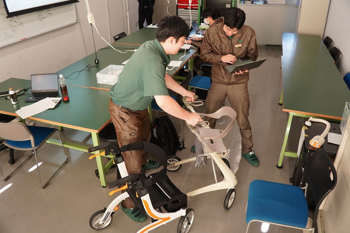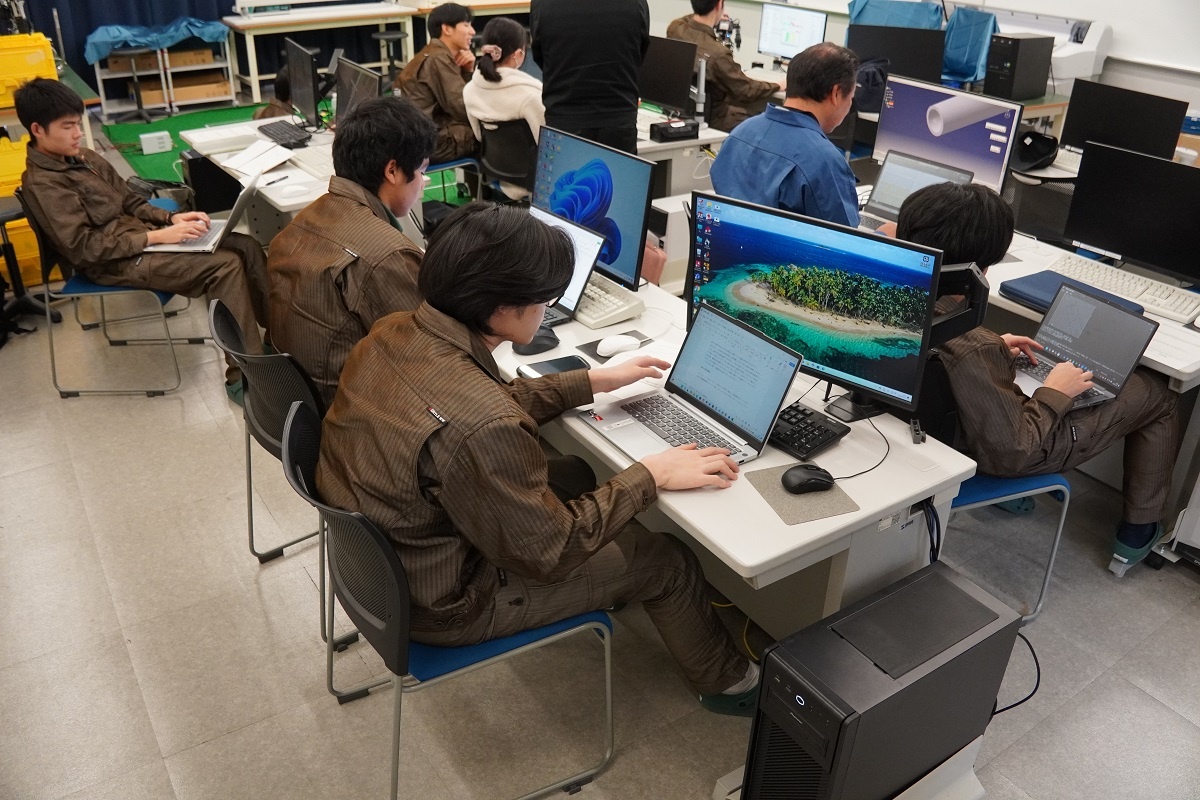 今日は1年生が総合実習でした。「マシンデバイスの共同開発」班は、ついに、AGVがラインに沿って動きました。また、「先端小型ロボットの開発と製作」班は、週末、岡山県で開催される「第29回つやまロボットコンテスト」に向けて最終調整に取り組みました。