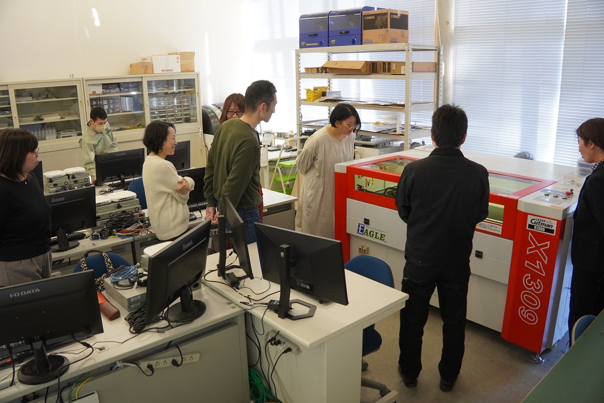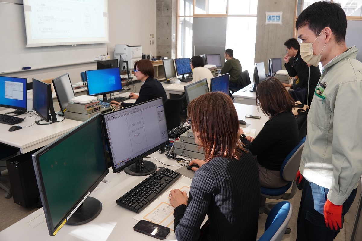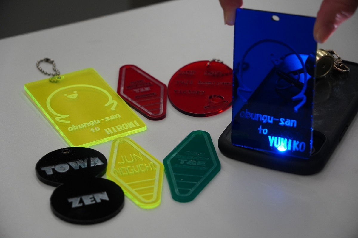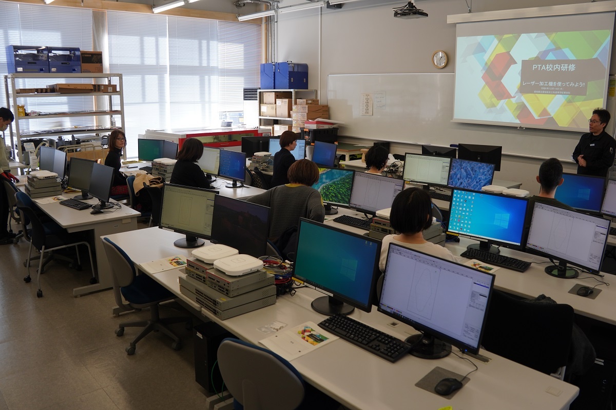 今日は第2回PTA校内研修会が開催されました。今回は第1回で行われた「レーザー加工機を使ってみよう」が好評で、もう一度やりたい!という声にお応えして開催されました。 いつも生徒が使用しているCADソフトやレーザー加工機を使って、おのおの作品を作っていただきました。和気あいあいとした雰囲気で、素敵な作品ができました。