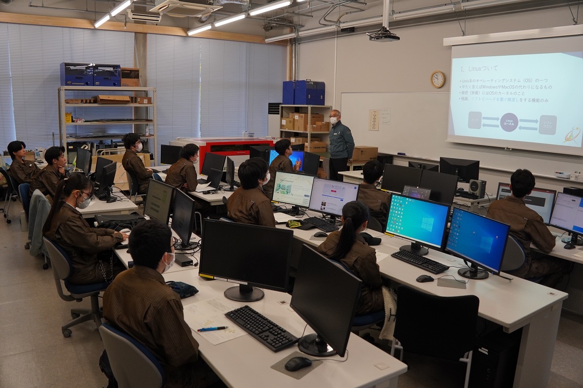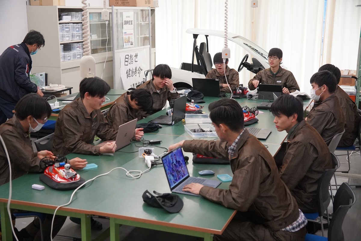 あけましておめでとうございます。専攻科は今日から授業開始で、2年生がコース実習でした。自動車・航空コースは「電気機器」、電気・制御コースは「システム制御応用」、情報・ITコースは「SEAMS」、電子・ロボットコースは「FA総合課題」に取り組みました。