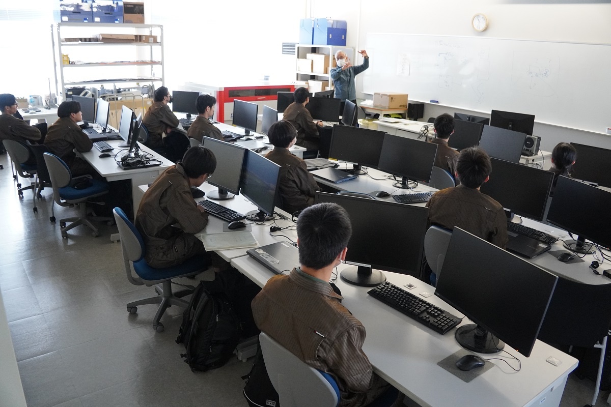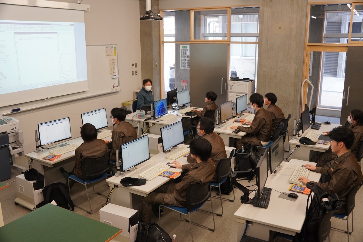 今日は1年生がコース実習でした。自動車・航空コースは「自動車開発プロセス」、電気・制御コースは「電力設備実習@NTTアノードエナジー」、情報・ITコースは「MATLAB」、電子・ロボットコースは「SEAMS」に取り組みました。