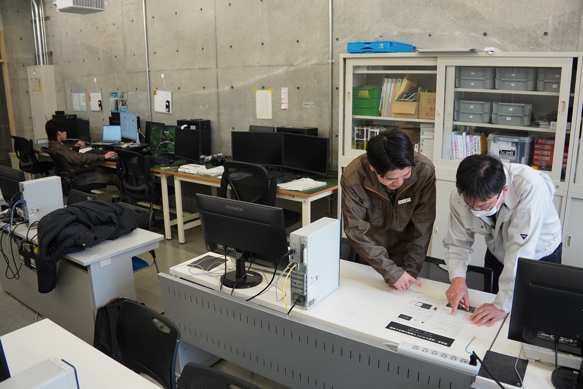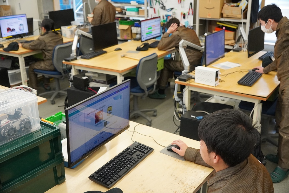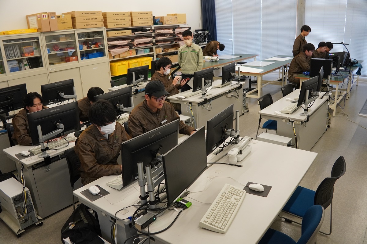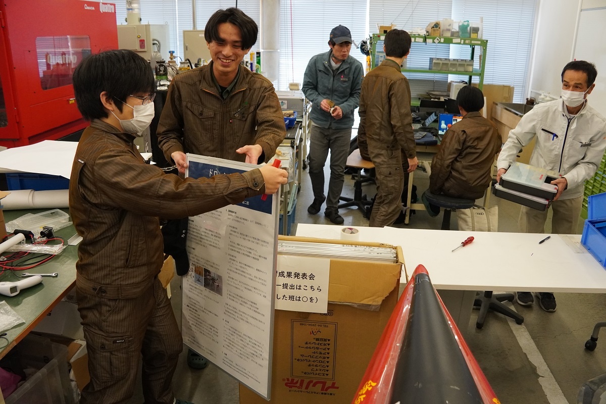 今日は2年生が総合実習でした。「航空機製作に向けての基礎研究と実践(鳥人間コンテスト挑戦)」班は、本日横断幕が完成しました。また「ドローンの研究(国家資格の研究と取得及び姿勢制御の学習)」班は、自分たちで製作したドローンを飛ばすことに成功しました。