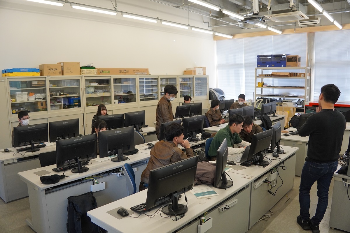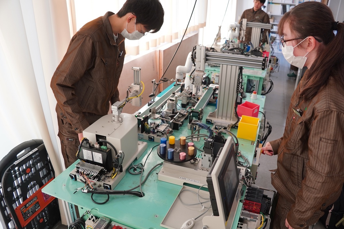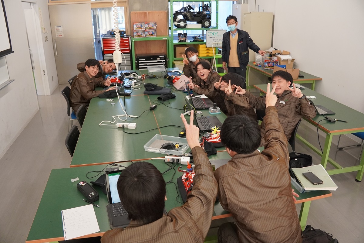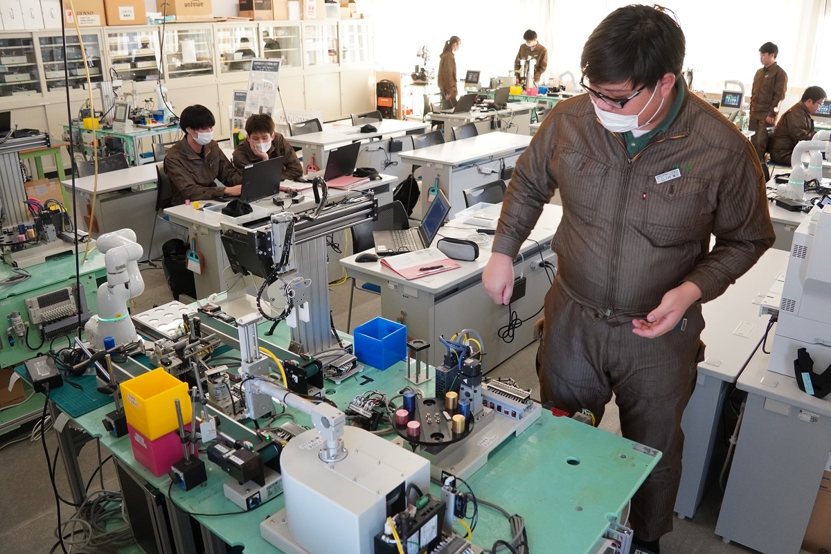 今日は2年生がコース実習でした。自動車・航空コースは「電気機器」、電気・制御コースは「システム制御応用」、情報・ITコースは「SEAMS」、電子・ロボットコースは「FA総合課題」に取り組みました。