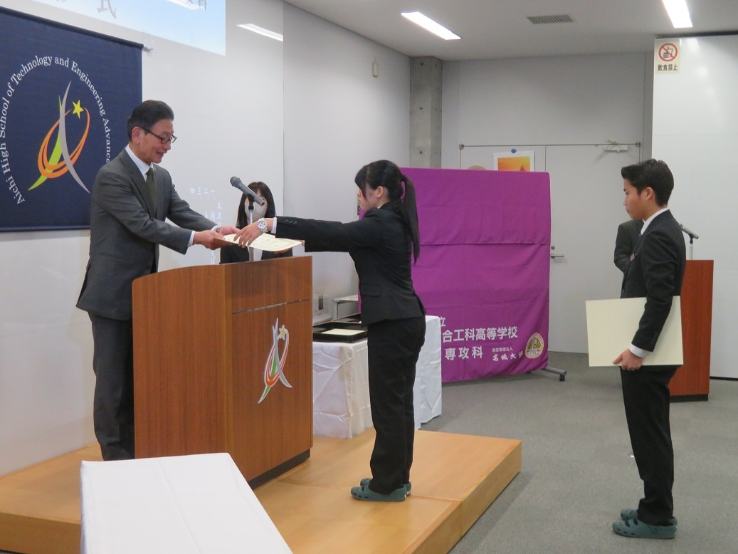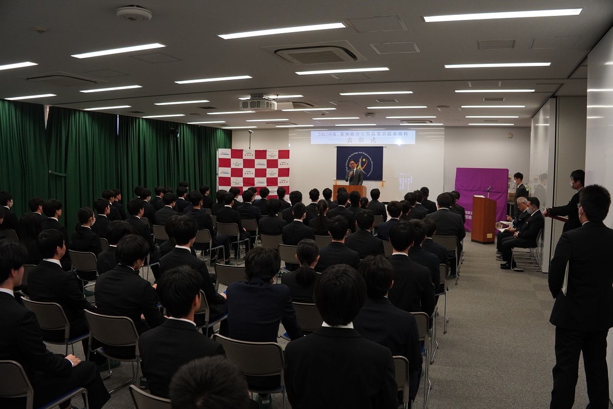 今日は表彰式、修了式予行練習、同窓会入会式が行われました。表彰式では年間を通して活躍した生徒が表彰されました。同窓会入会式では同窓会長の挨拶、記念品贈呈、役員紹介が行われました。